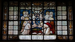 A Greek revival church designed by the Inwoods in 1819-1822. Opposite Euston station. The interior is rather dark as every window is filled with Clayton & Bell glass.