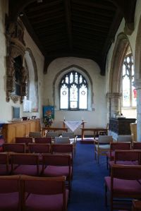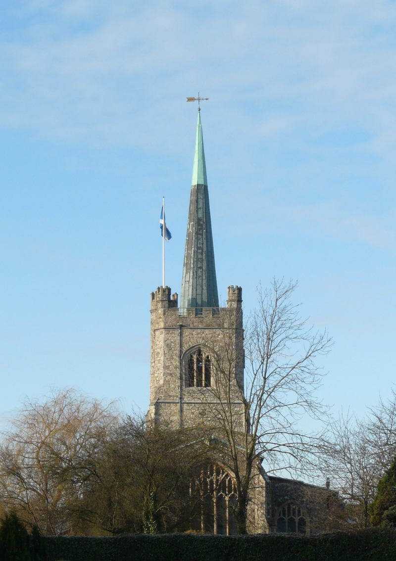High above Hornchurch town centre, a mainly medieval church, well lit with little stained glass. The south aisle, of brick, dates from 1802 and is likely by John Johnson.