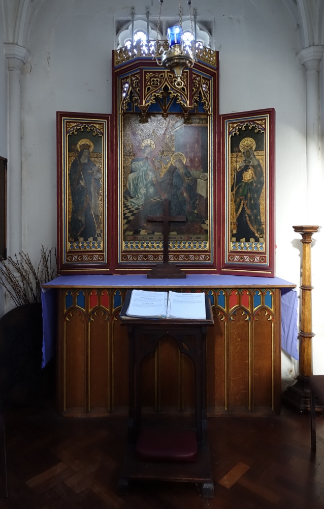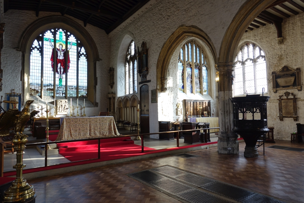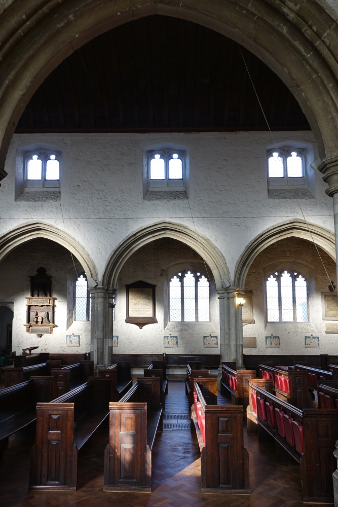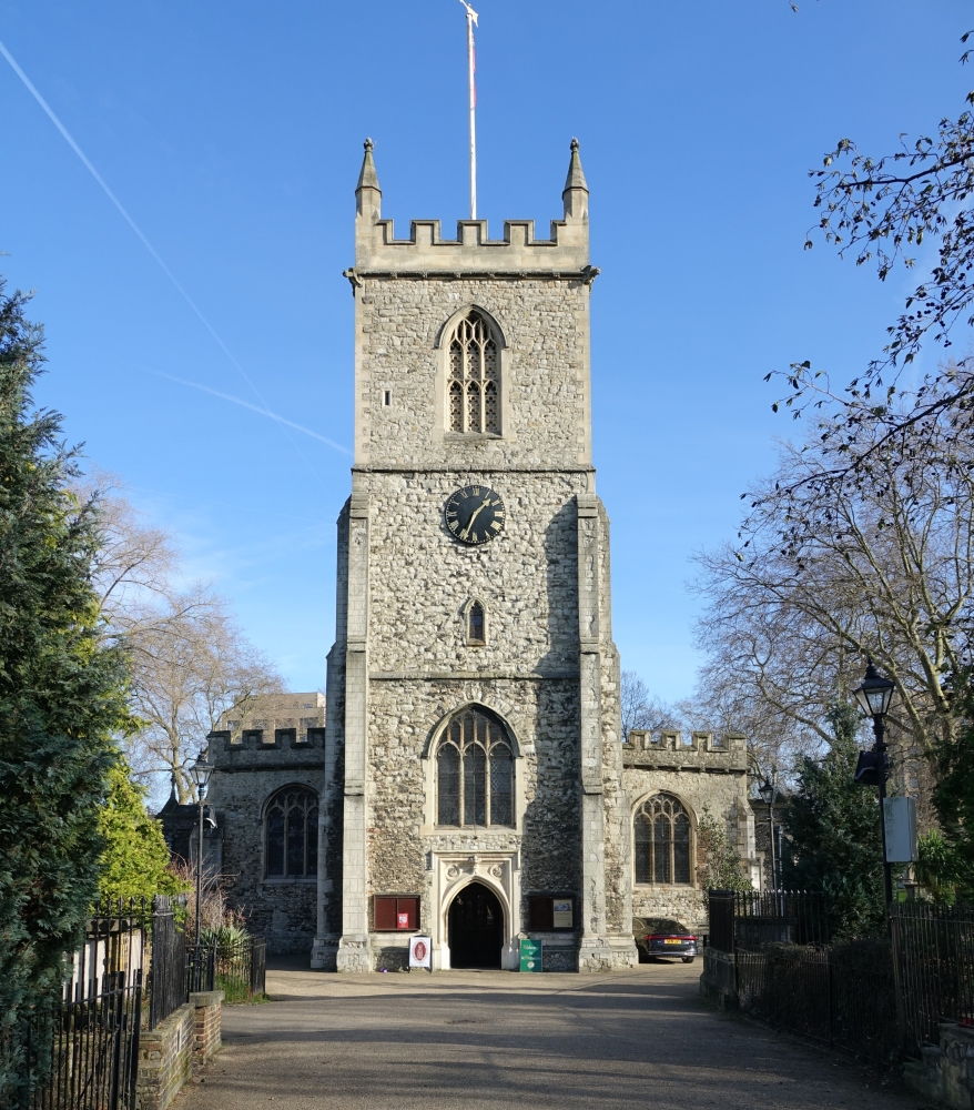 A large medieval parish church in a spacious and green churchyard despite being in inner city London. There is a city farm nearby. The church is much restored and rebuilt following 20th-century fires and war damage. There are several post WW2 damage windows by Hugh Easton.