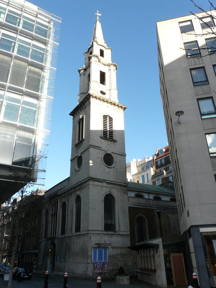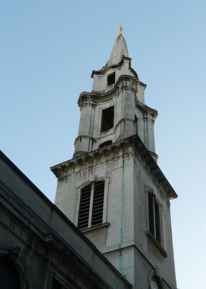 By Sir Christopher Wren 1695-1701, but using some of the fabric of previous churches. The spire, which has been attributed to Hawksmoor dates from 1709-1712. War damage meant a restoration in a collegiate style by Stephen Dykes-Bower between 1953 and 1963 with many of the furnishings coming from lost city churches