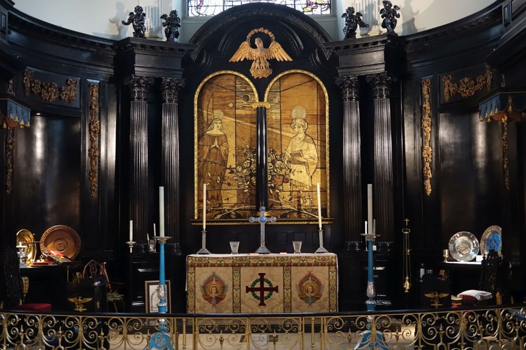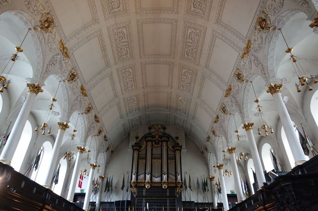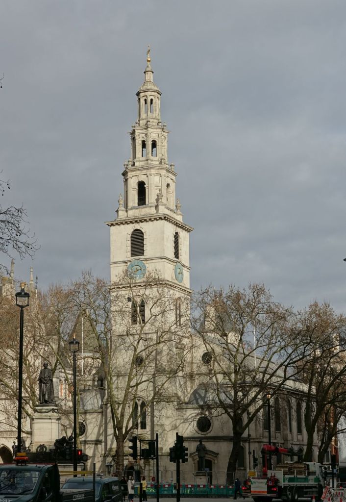 The RAF church sitting on an island near the Aldwych on The Strand. Christopher Wren’s church of 1682 was badly damaged in the second world war and rebuilt in the 1950s. A crypt runs at right angles to the church itself.