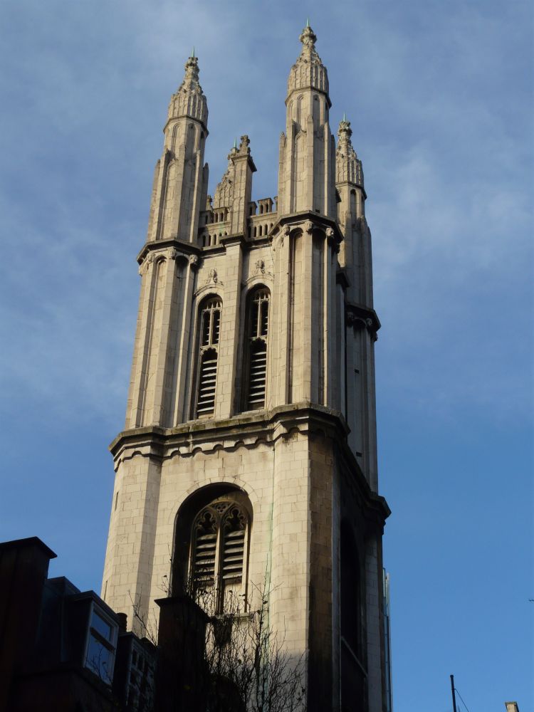 A Wren church of 1669-72, gothicized by Gilbert Scott 1857-60.