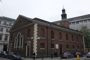 Behind Debenhams in Oxford Street. It was an estate chapel and is now the London Institute for Contemporary Christianity. The architect was James Gibbs and it was built 1721-24. The interior is now bare but it still has William Morris glass designed by Burne-Jones in the east window which dates from 1881.