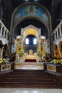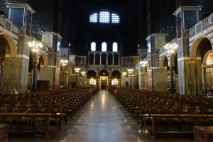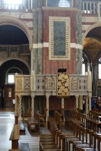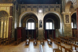 The premier English & Welsh Roman Catholic church. It is the neo-byzantine masterpiece of John Francis Bentley built from 1895-1903, though much of the planned interior decoration has never been added. Some of the side chapels have been decorated during the 21st century but the upper areas of the nave remain powerfully bare. The lower areas are covered in a wide variety of marbles. The Stations of the Cross are by Eric Gill. It sits in front of a modern piazza on the southern side of Victoria Street.