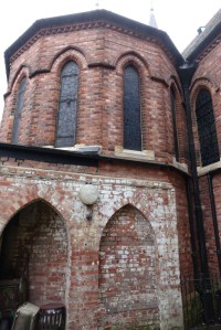 1888-89 by Ewan Christian to serve the expanding suburbs and provide a higher church alternative to many other Islington churches. The current church hall was a Mission Church that was moved backwards after the church was built (last two images). There were more ancillary buildings around the east end but several have now gone. Church website