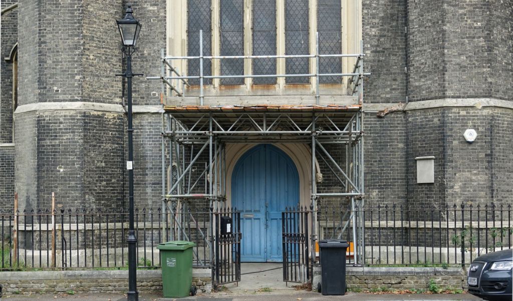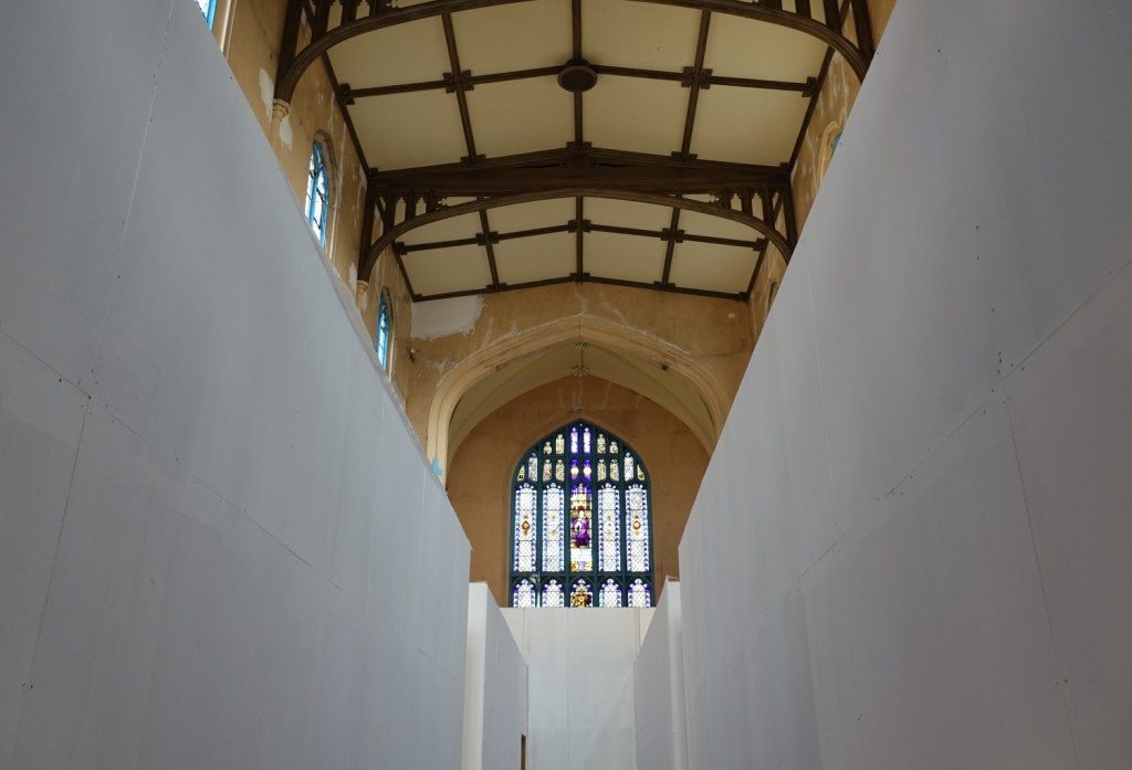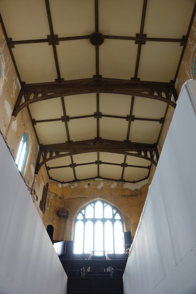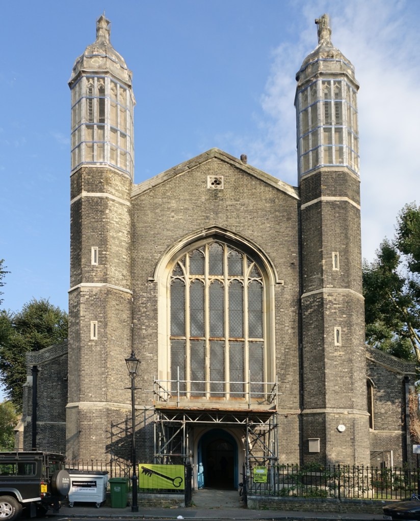 Built by Charles Barry 1826-29.  The interior was much changed and not in a great state of repair while under lease to the Celestial Church of Christ.  The lower exterior pictures are from September 2015 and the interiors from October 2016 while repair work was going on. The poor condition of the building led the Church of England to repossess the lease on the church in November 2017 and funding to carry out repairs was sought. In September 2024 some repairs have now been undertaken and the interior partitioned temporarily into artists’ studios for the Florence Trust. Three images below the 2024 images show its external state in September 2022.