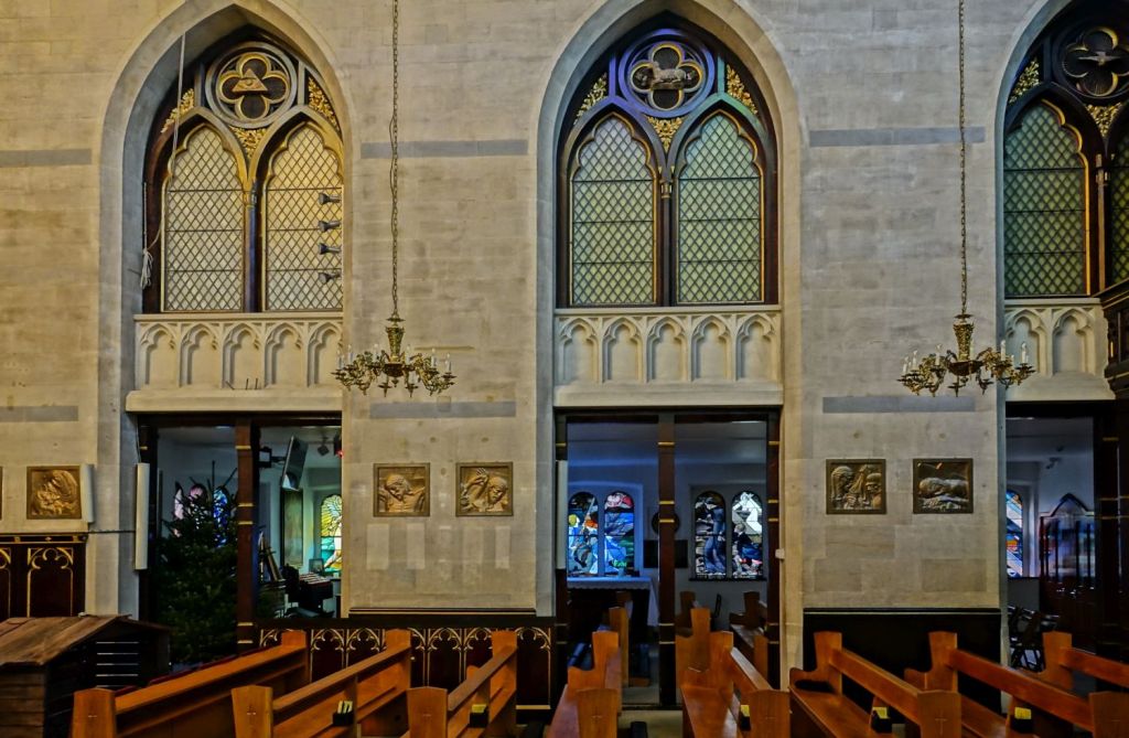 Previously the Swedeborgian’s national seminary and school. It was built in 1852 by Edward Welch with extensions 1865-75 by Finch and Paraire. The stained glass is by Polish artist Adam Bunsch who was a member of the Polish forces based in the UK at the end of WW2.