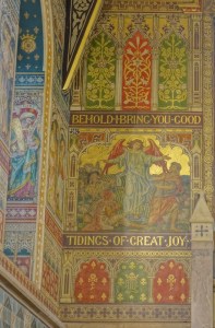 A late William Butterfield church of 1883. It sits on a hilltop above Enfield and near the Ridgeway. The chancel was decorated in 1897 with designs by Nathaniel Westlake and Charles Buckeridge. It was restored in 2012 and presents a great contrast with the rather plain nave. Much of the stained glass was designed by Butterfield and made by Heaton, Butler and Bayne.