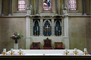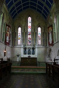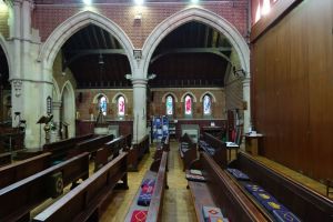 Close to Whipps Cross hospital and right next to a southern extension of Epping Forest. A large church of 1887-92 by Sir Arthur Blomfield. Inside the nave’s western three bays have been divided off to create a hall area. Much of the stained glass is interesting arts and crafts work by Margaret Chilton, added over a long period during the first half of the 20th century.