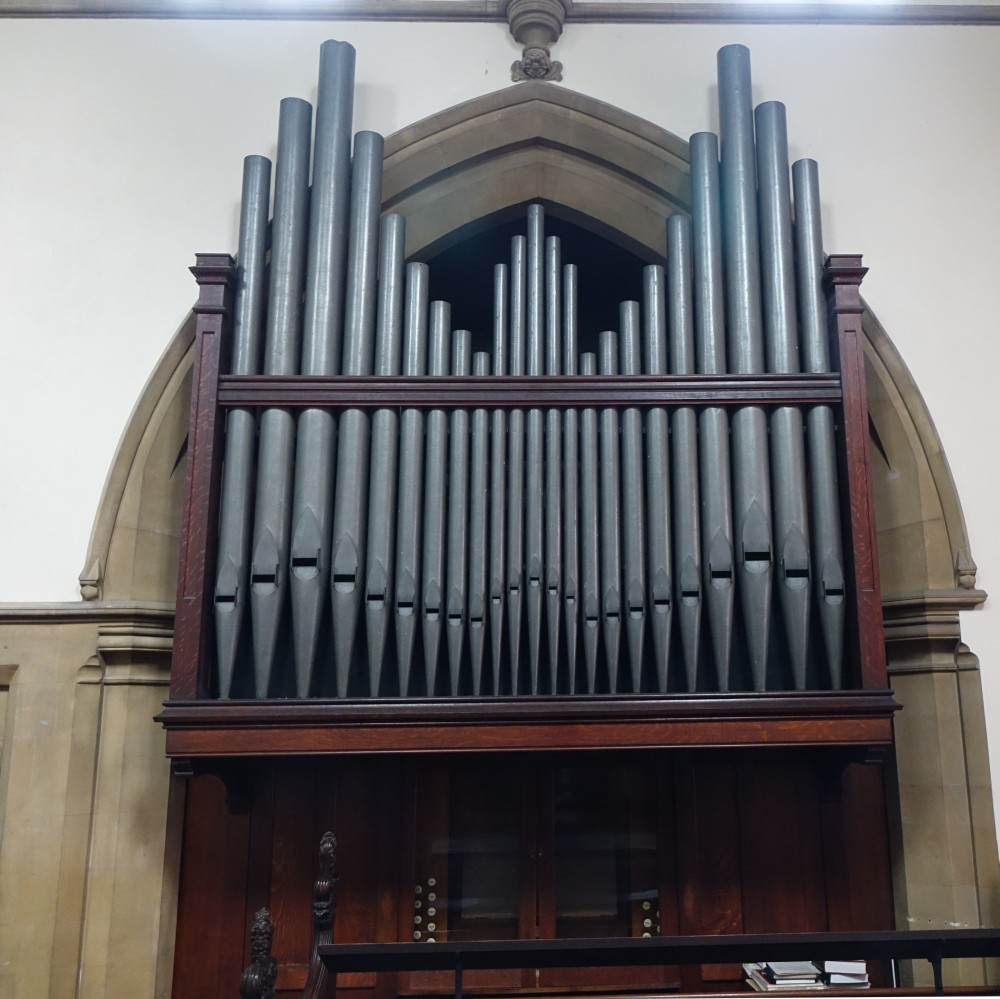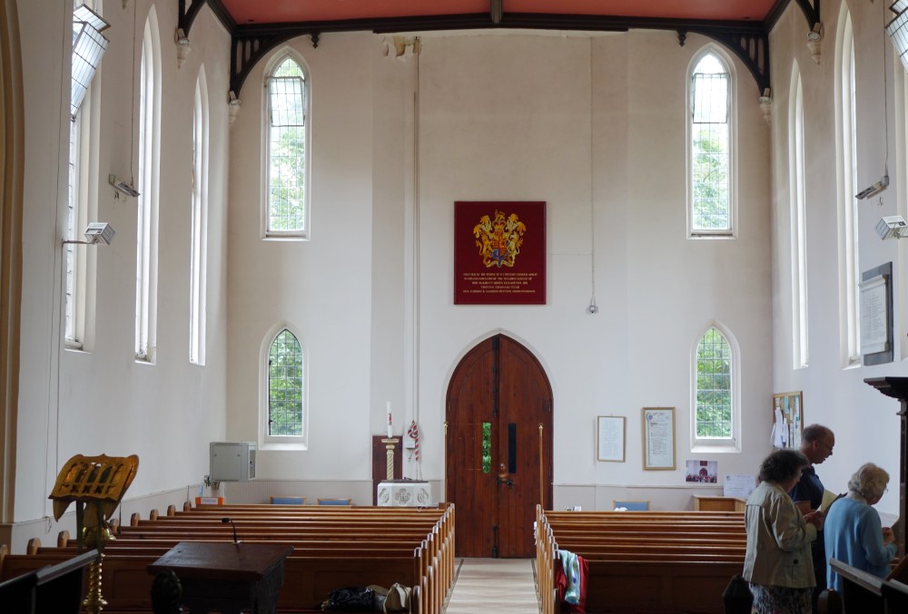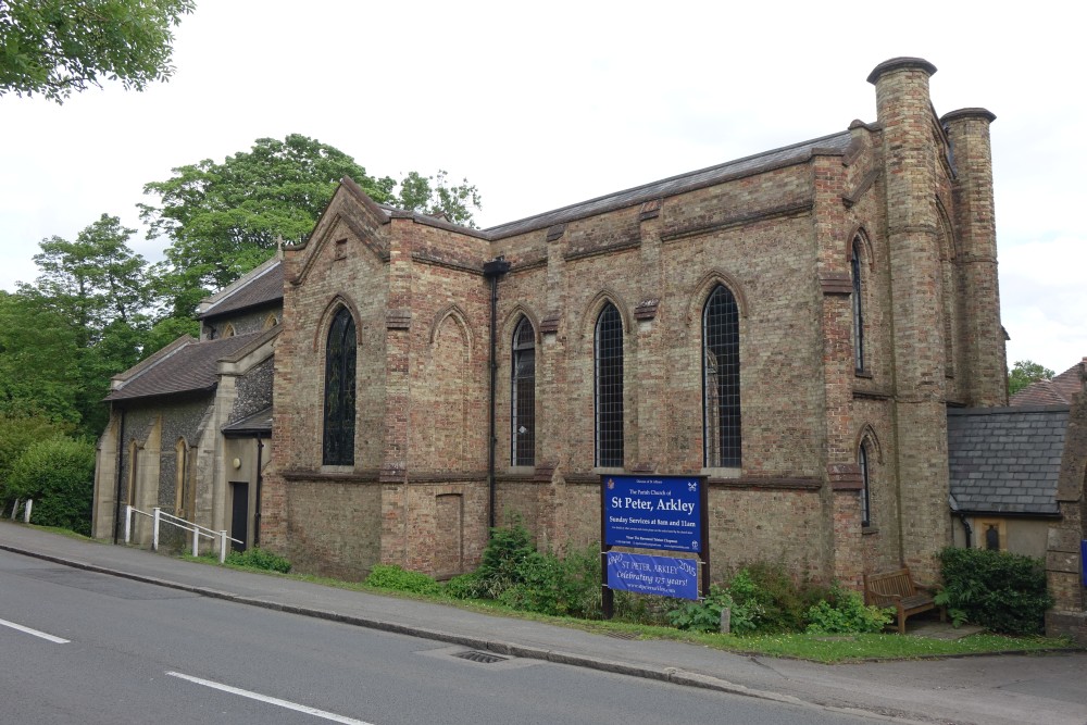West of Chipping Barnet lying side on to the road, a small brick church of 1840 by George Beckett. The chancel of 1898 is by J.C. Traylen.