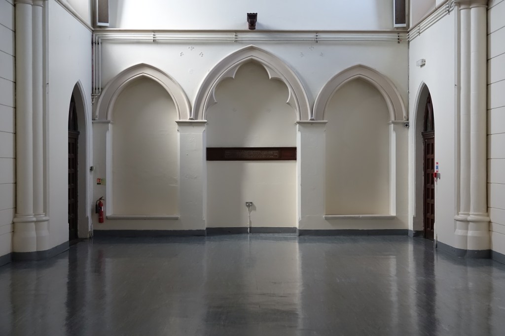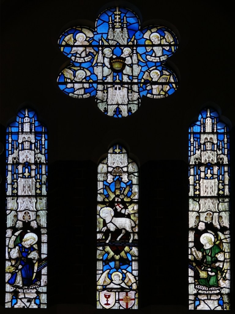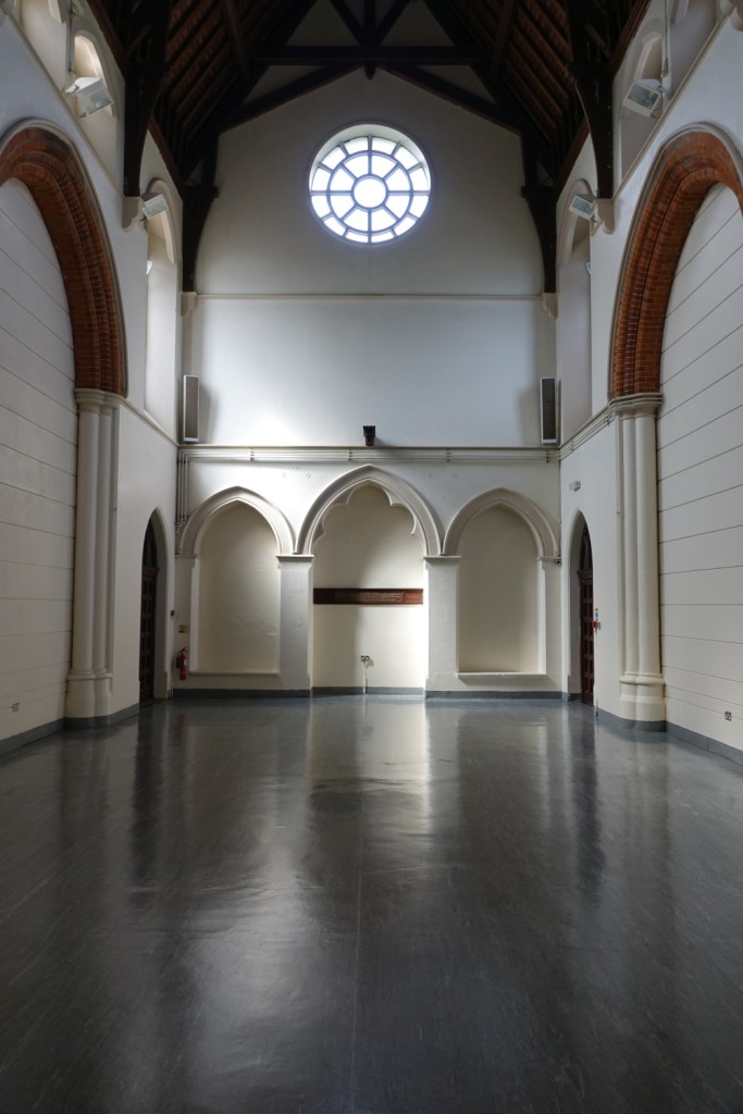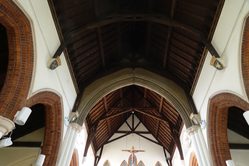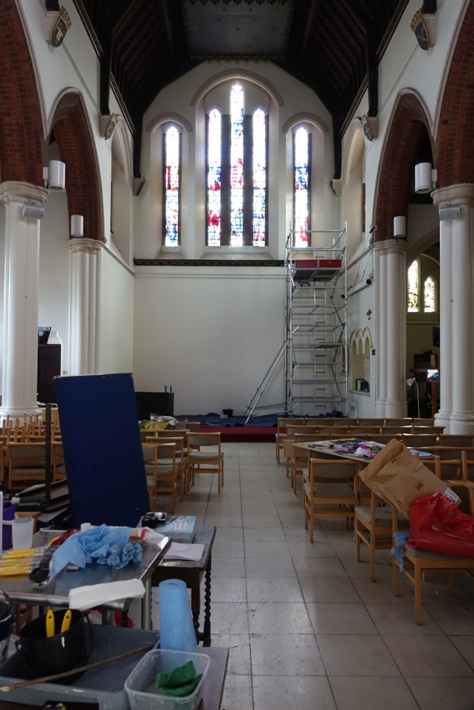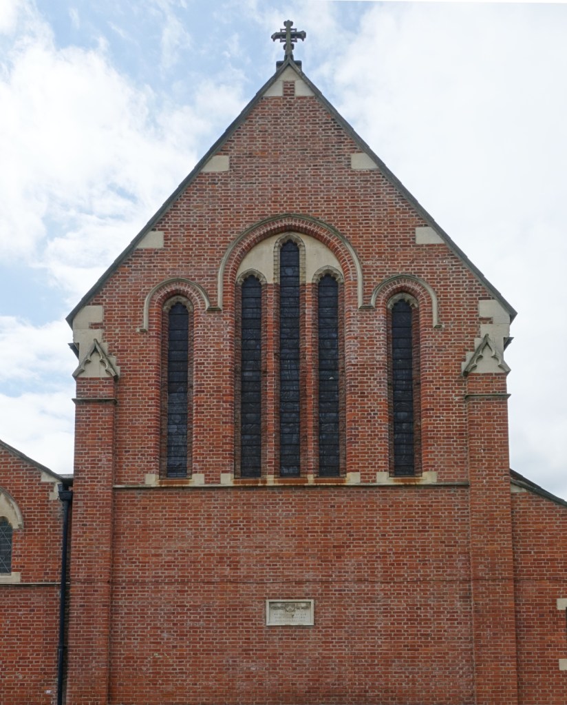 A large, now subdivided church by J.E.K Cutts and J.P. Cutts dating from 1903-07. It was part of a mission founded by Felstead School, Essex. The chancel is used for worship and the nave and aisles as a hall and associated facilities. There is glass in the sanctuary area by Ninian Comper, some other glass is hidden by inserted ceilings and by being in toilets (the gents ones are shown). In my 2024 visit the decorators were in so the interiors of the worship area were somewhat disrupted. A few from my 2013 visit are included for completeness at the end of the worship area interiors.