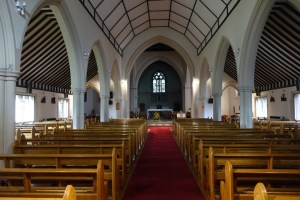 At a busy junction a short way north of the town centre. It is by E. Doran Webb and dates from 1905-07. Modern glass by Mark Angus from 1981-82.