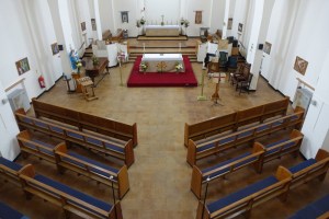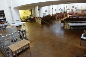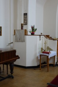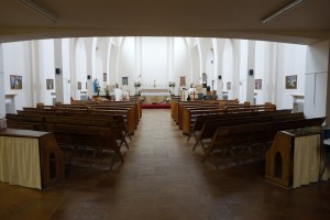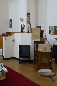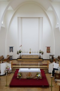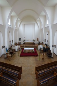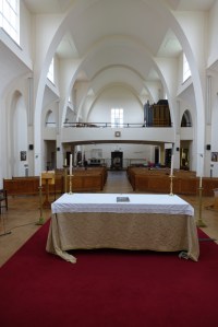 Prominent above a major road junction. It was built in 1939 and designed by Seely and Paget. The interior has a gallery carried on a bridge across the centre of the nave. Church website