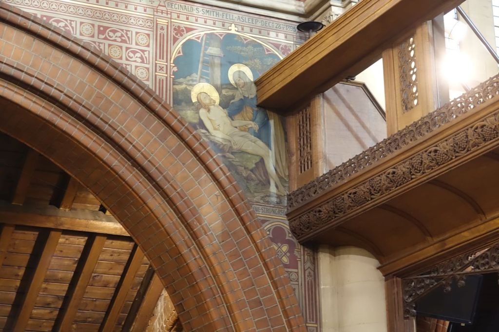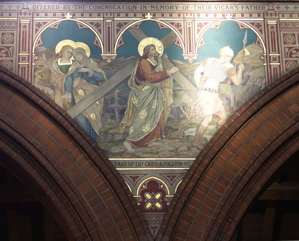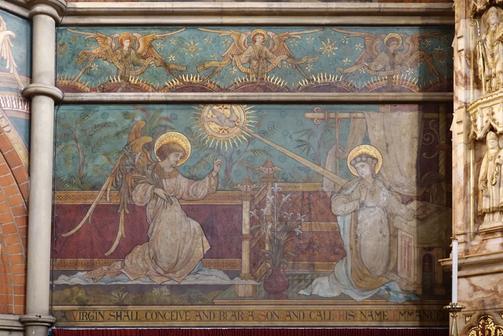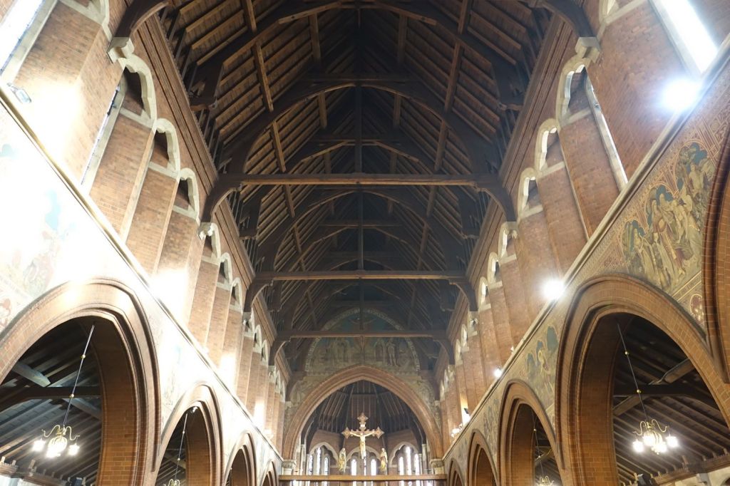 A typical large church of 1885-87 by J.E.K. Cutts. It was founded by Marlborough College which is one of the reasons for its more ornate than usual interior. Church website