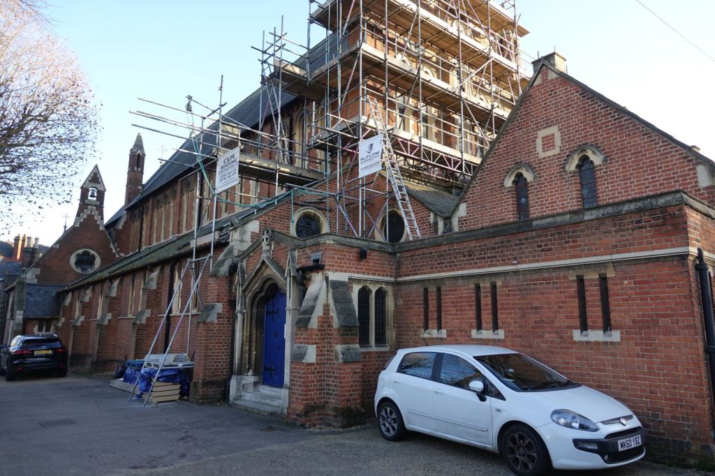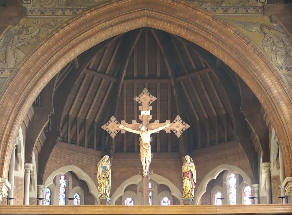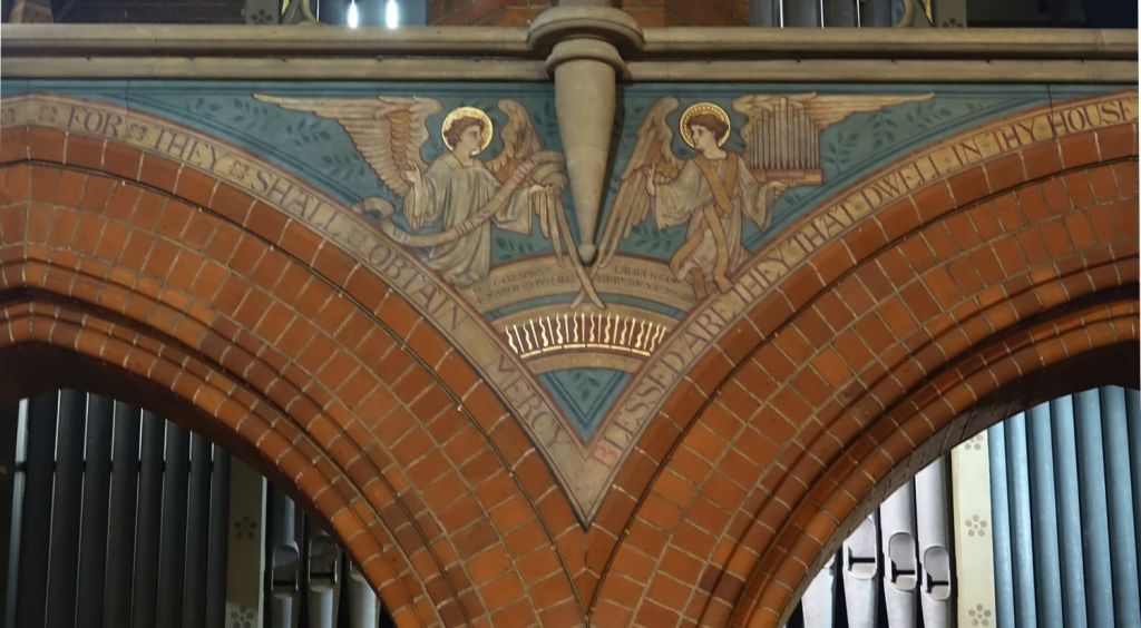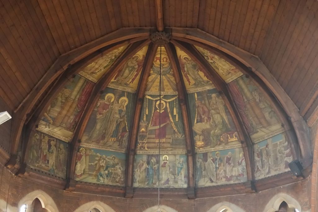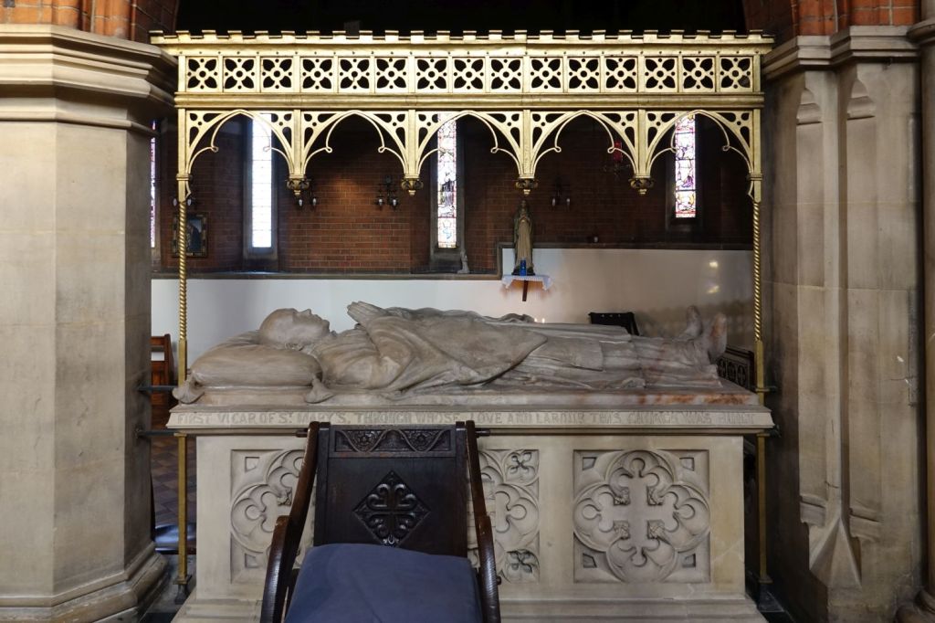 A typical large church of 1885-87 by J.E.K. Cutts. It was founded by Marlborough College which is one of the reasons for its more ornate than usual interior. Church website
