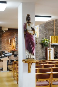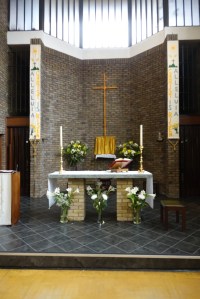 In the shadow of Spur’s White Hart Lane stadium. It is under a block of flats and was designed by Biscoe and Stanton in 1971-77. It presents two different faces to the street, depending on which street you are in. Church website.