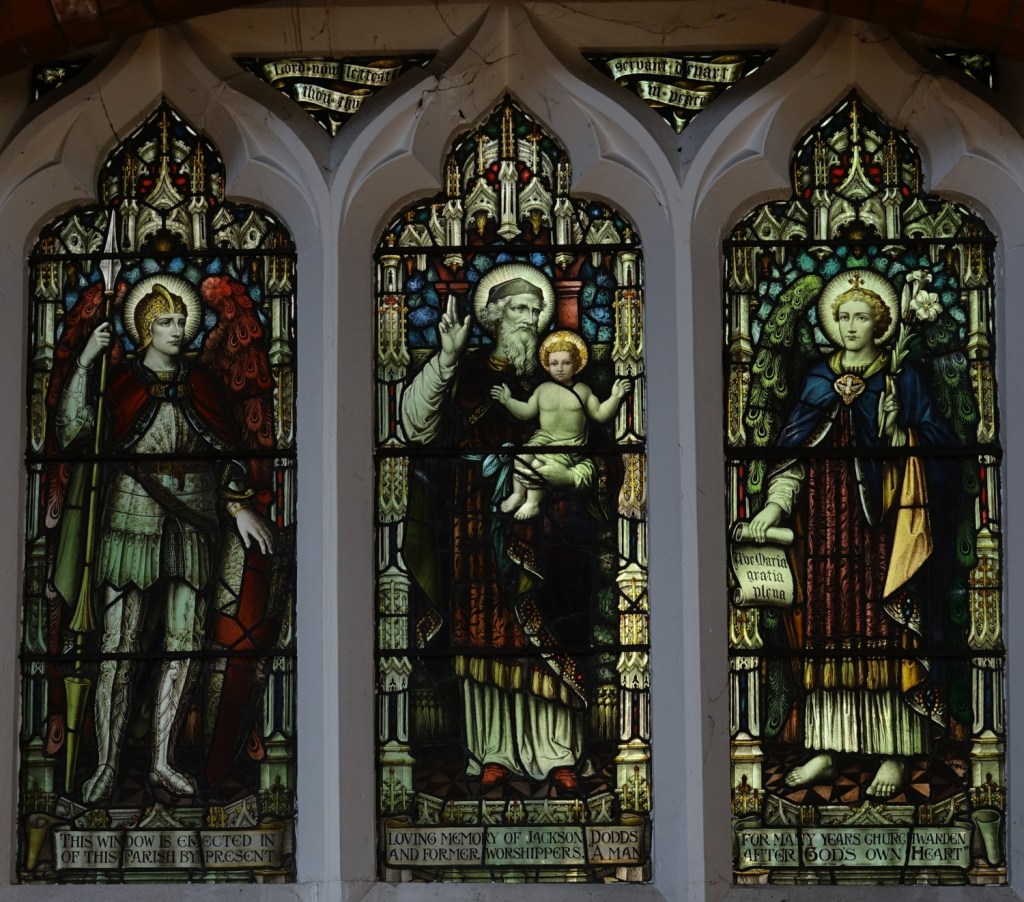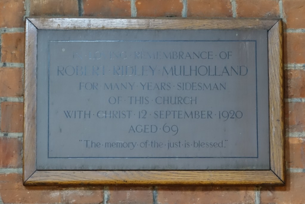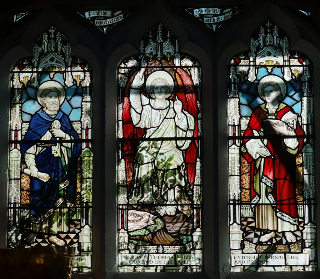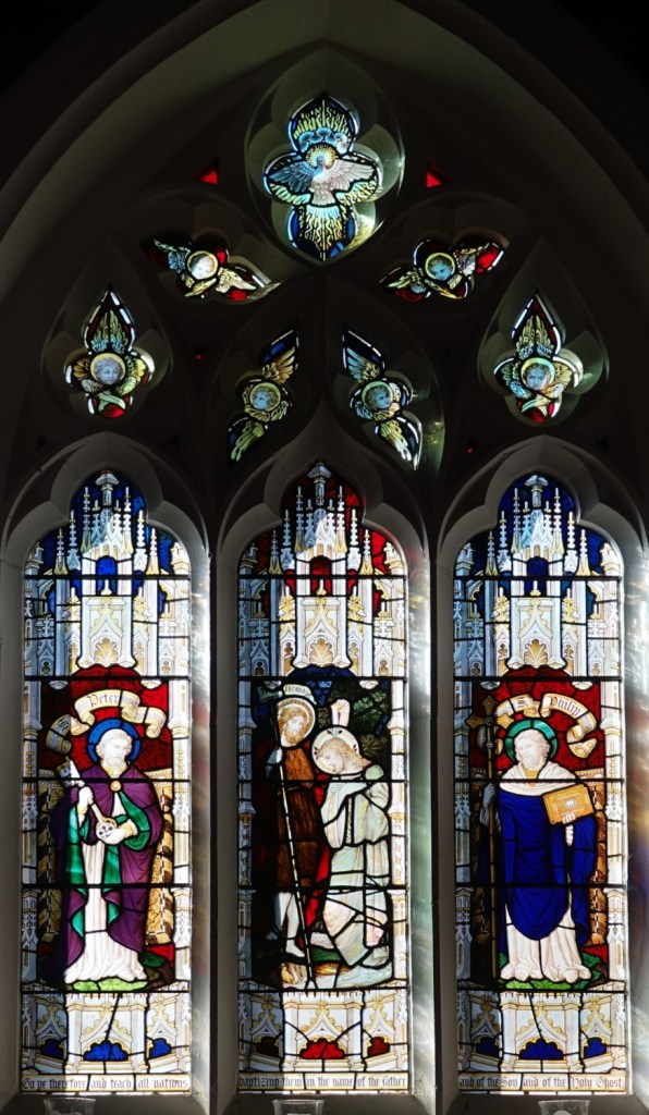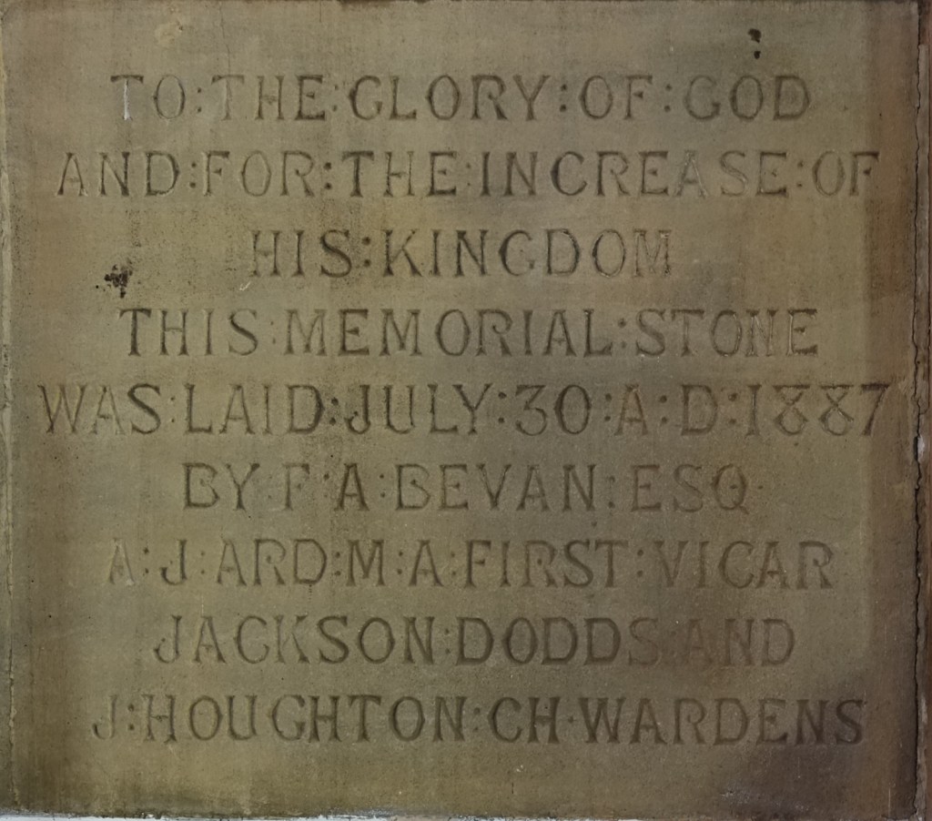 The nave dates from 1887-88 and the chancel from 1890, it was designed by J.E.K and J.P. Cutts. Inside the chancel has been altered to form a stage for a praise band and the altar and reredos of 1910 are largely hidden behind a curtain.