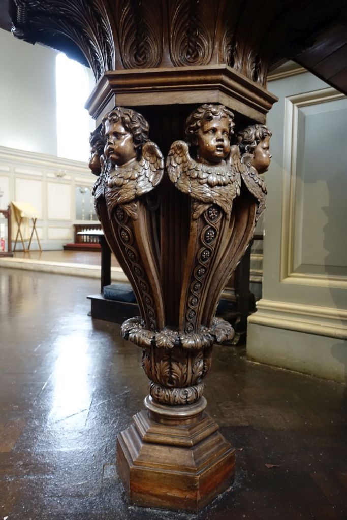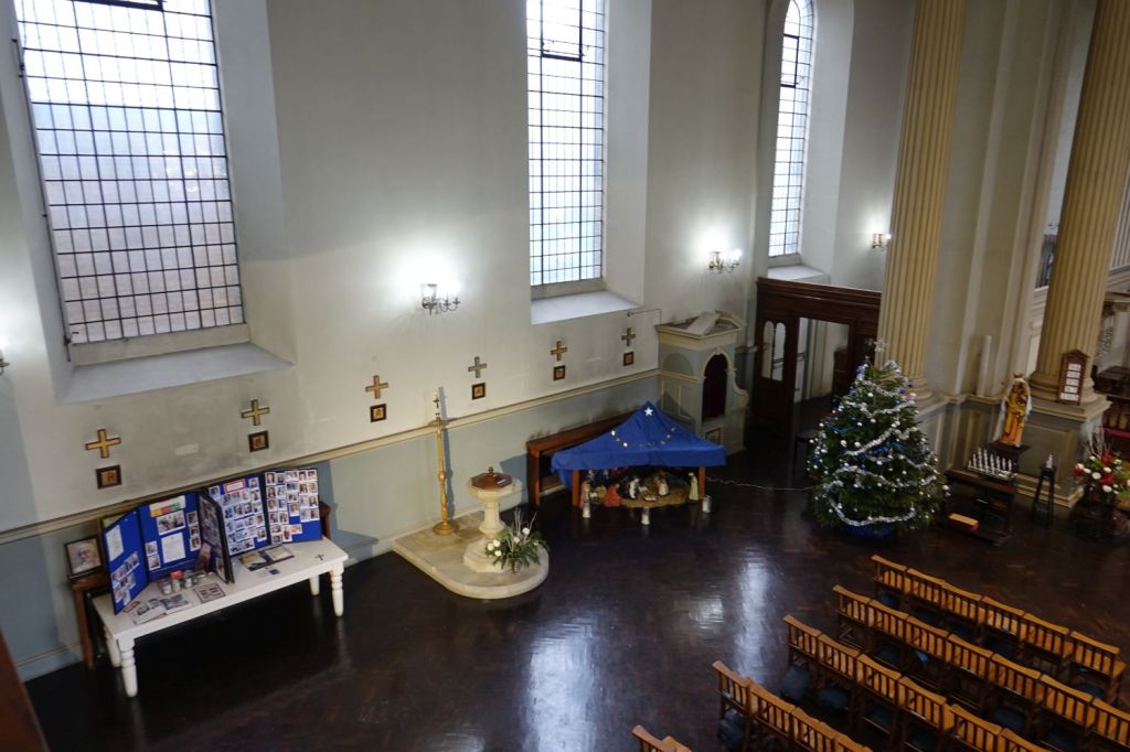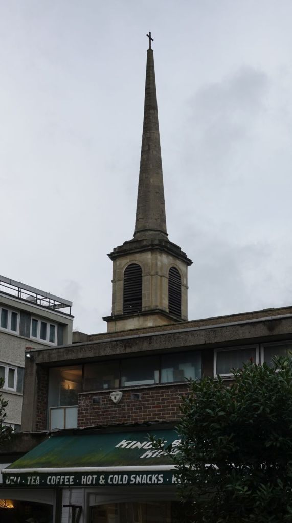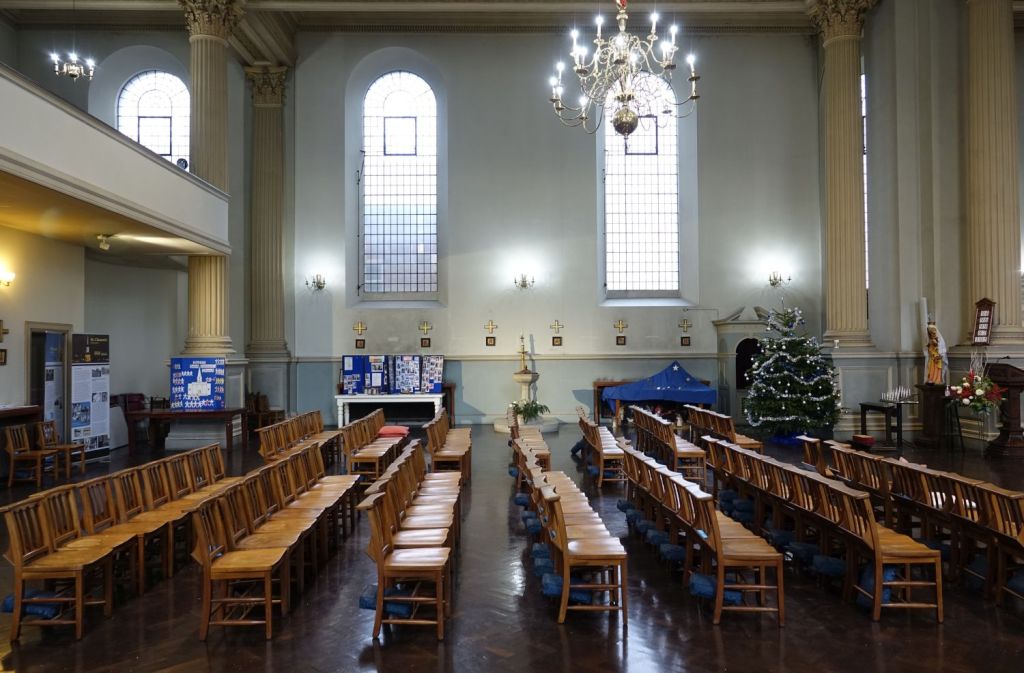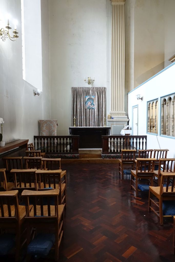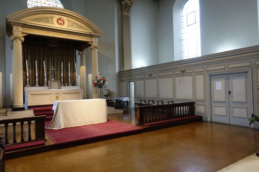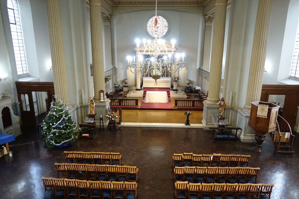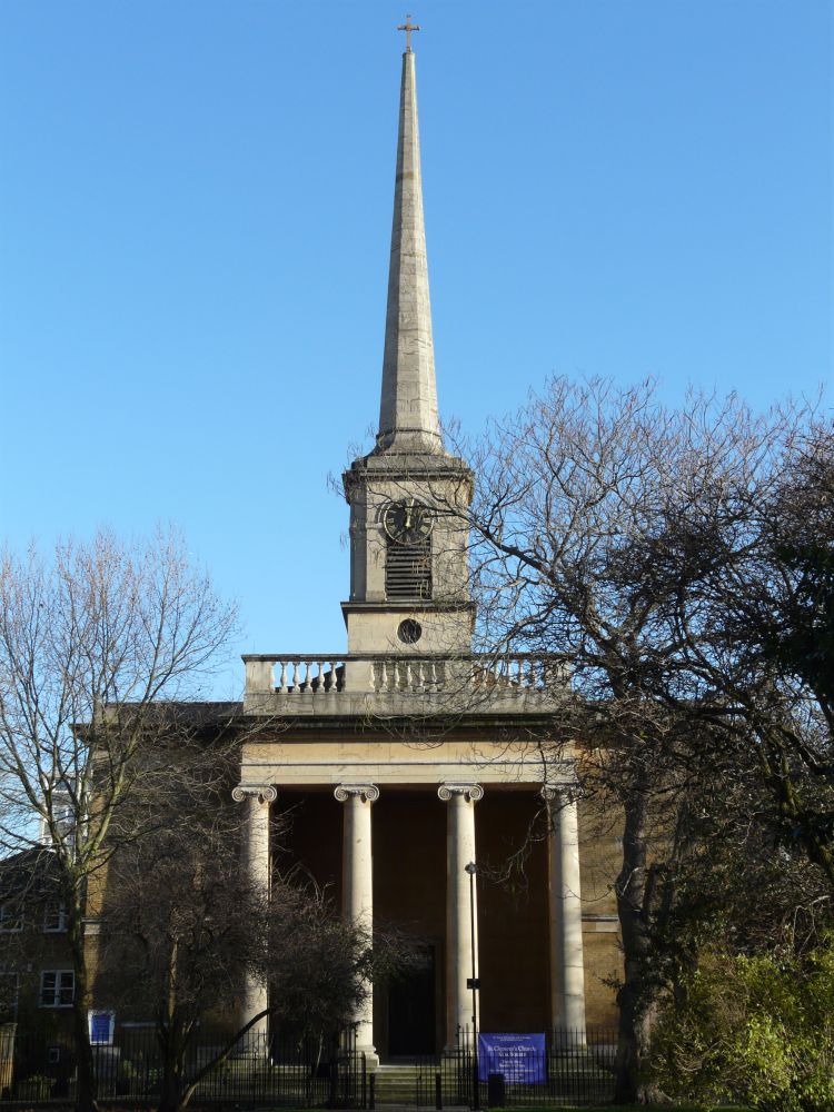 Built in 1826 to designs by Thomas Hardwick, it was damaged in WW2 and reopened in 1954 after repairs by Norman Haines. The pulpit in from the 18th century, coming from St Marylebone chapel.