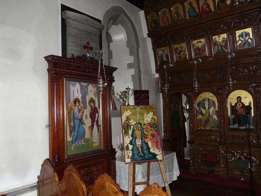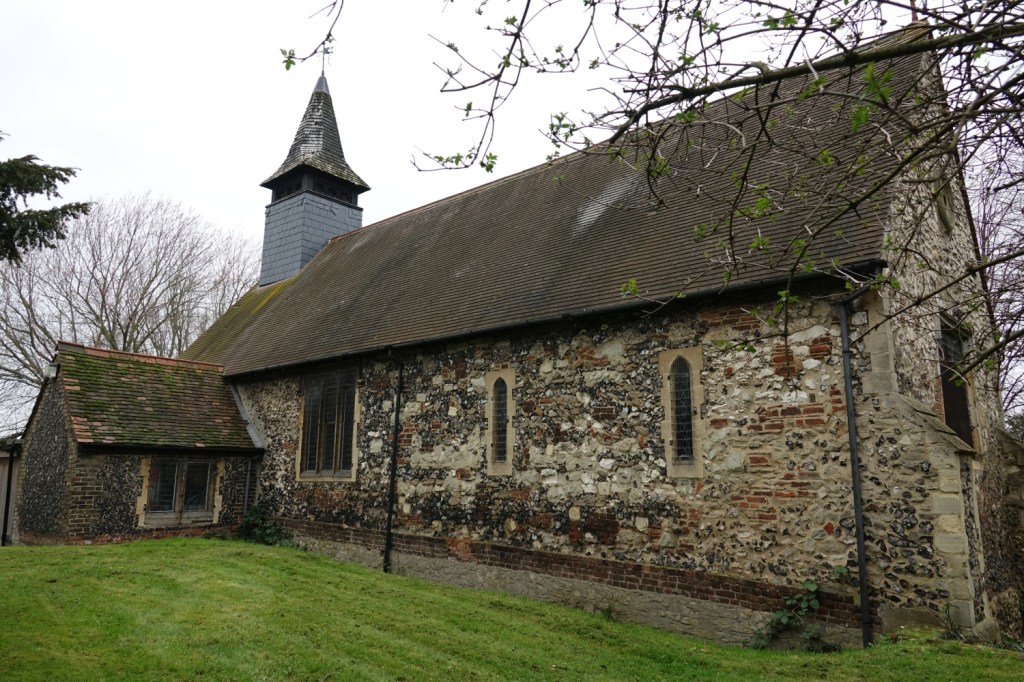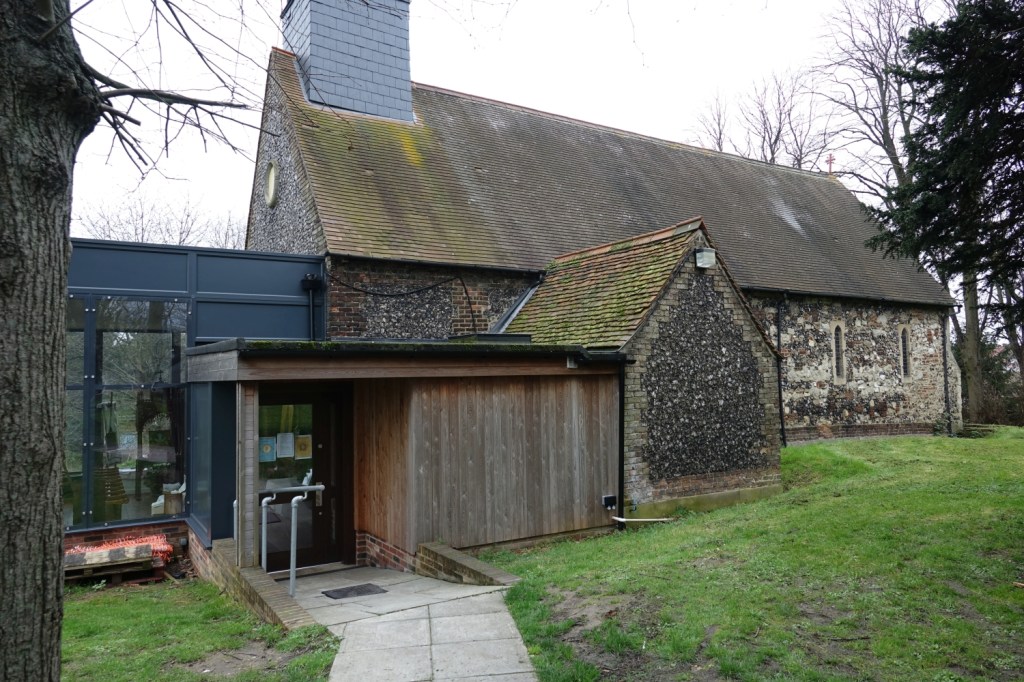 The original 13th-century parish church of East Wickham was replaced in 1935 by the current St Michael. It was made redundant in 1973 and has been used by a Greek Orthodox congregation since 1974. Many fittings were moved into St Michael but for obvious reasons, wall paintings remain. Since my earlier visit in 2014 a new largely glass narthex has been added to the church and this is shown in the first set of images. The second set shows the church, including the interior from the earlier visit.