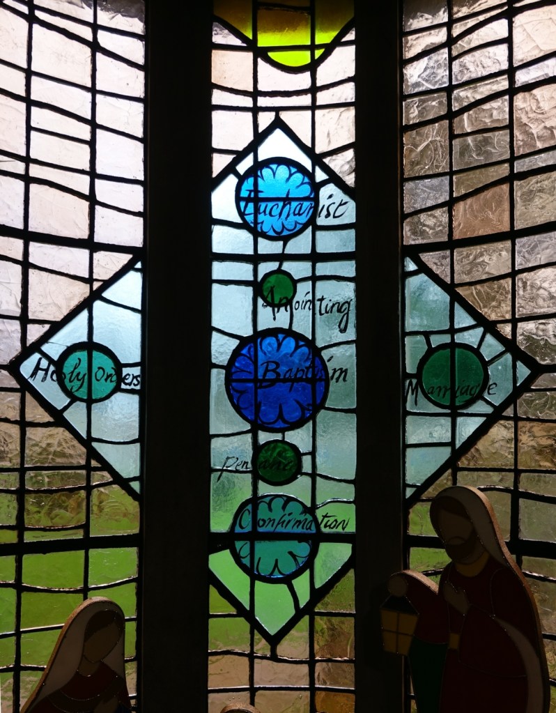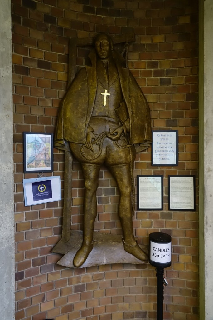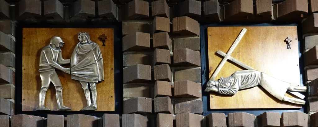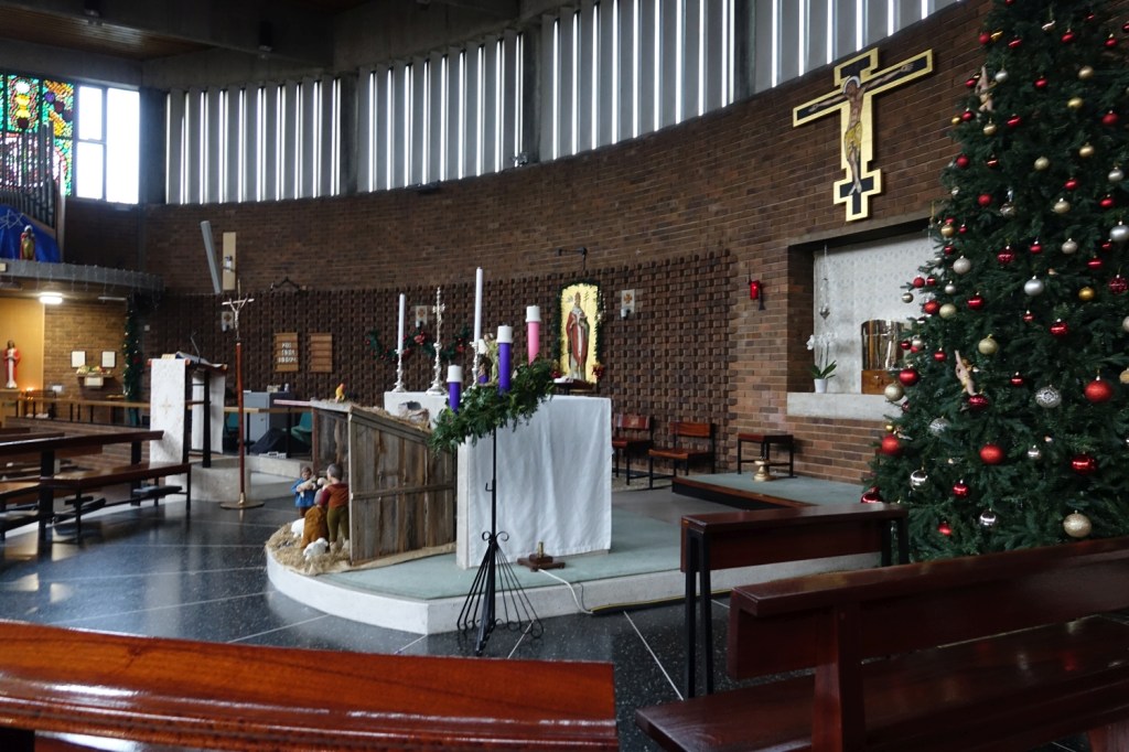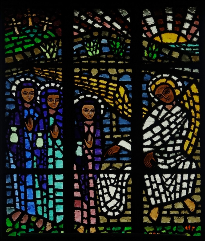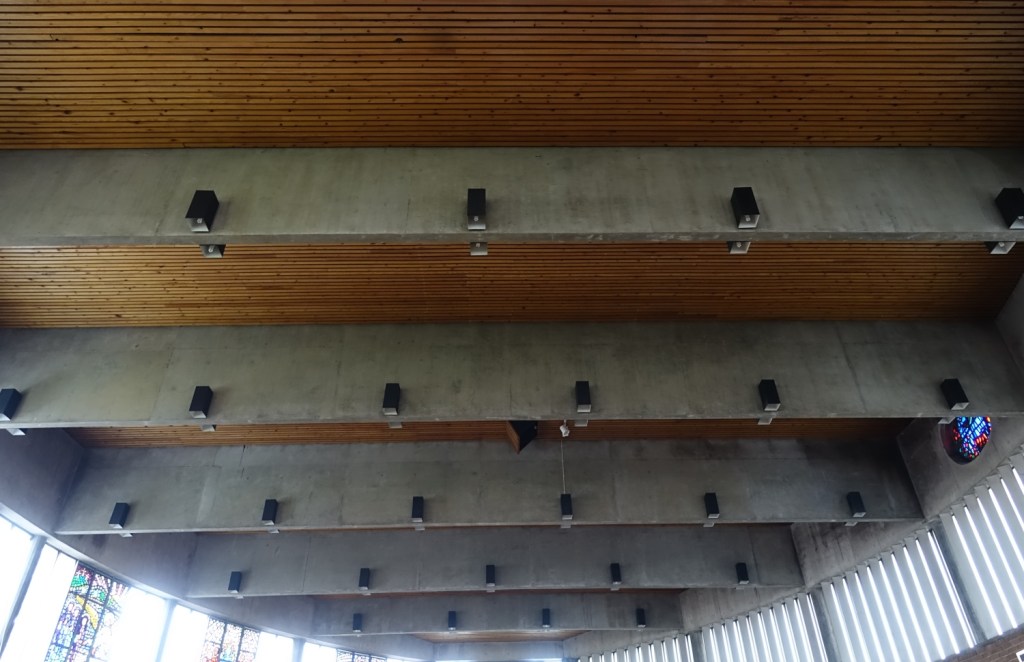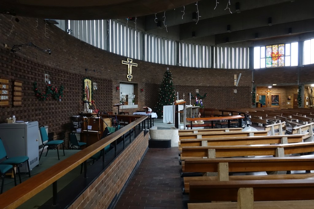 On the main road towards Ruislip, an oval church of 1965-1967 by Gerald Goalen. The baptistry glass is by Patrick Reyntiens, the other windows were added in 1987-1989 and are dalle de verre by Charles Norris.