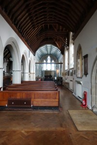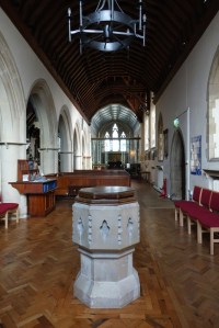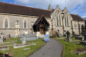 Well west of the station and the town centre. This is a church of 1854 by S.S. Teulon, with a north aisle added by the Cutts Brothers in 1894 and a south aisle and west baptistery added in 1927 by W.C. Waymouth.