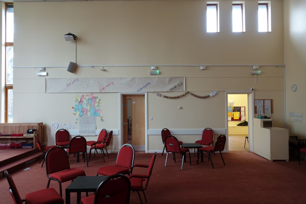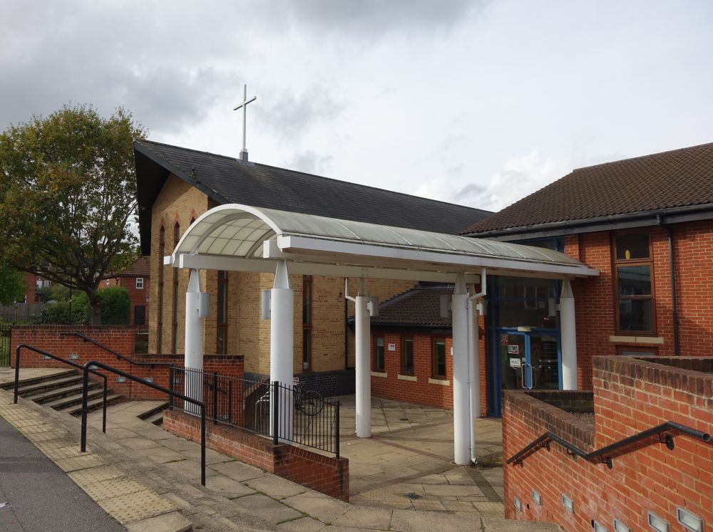 A small church in the north of Hanwell built in 2003 as part of a development that includes a YMCA hostel. It replaced a temporary church on the site that dated from the 1930s. The sanctuary windows have printed transfer patterns that were added in early 2024.