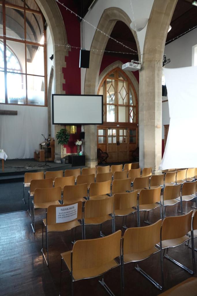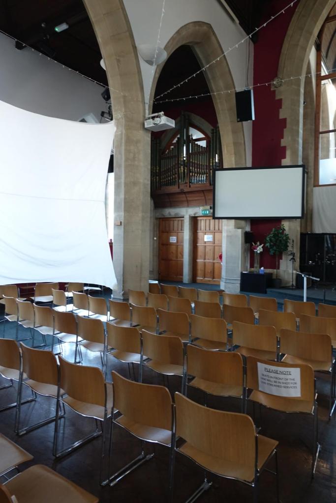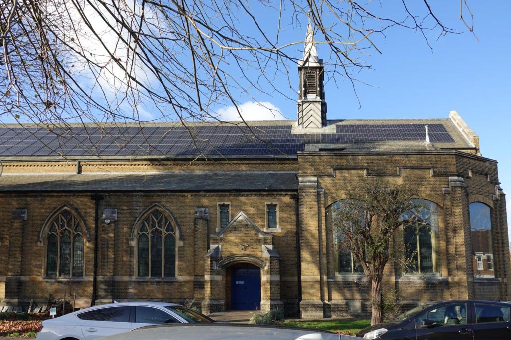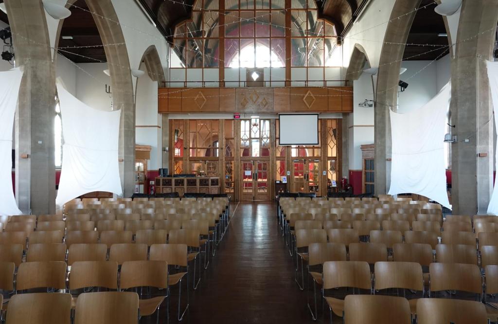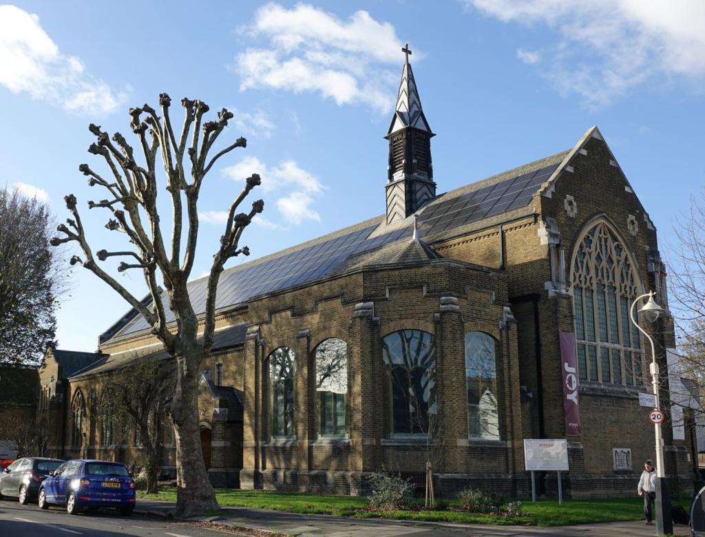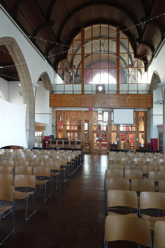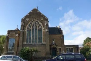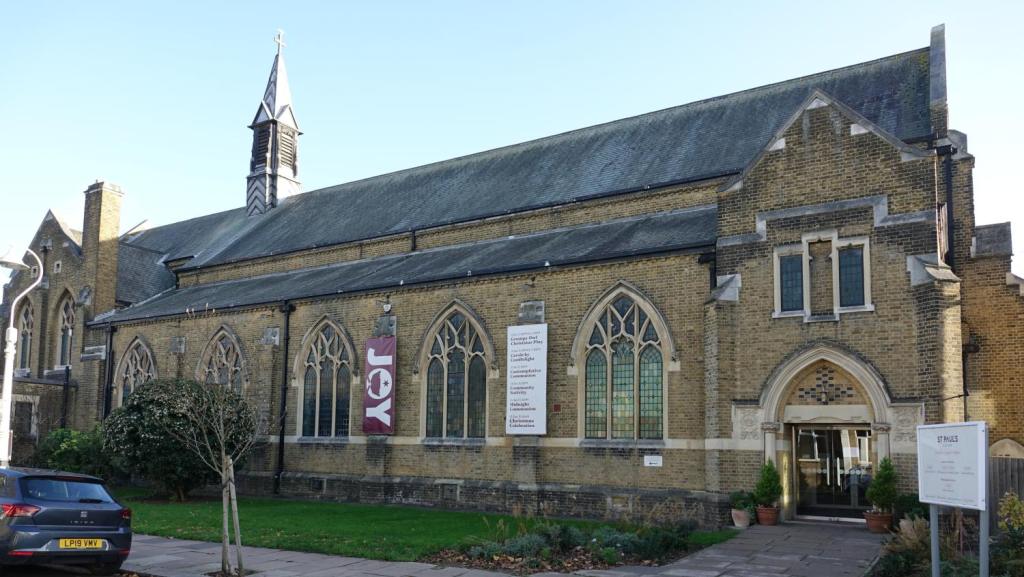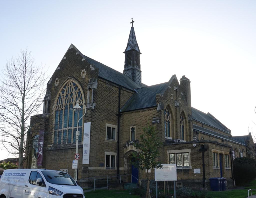 It is called St Paul, Ealing but is actually only a short walk from Northfields Station. A large church of 1906 by F.H. Hall-Jones and E.S. Cummings. It has been divided inside with the nave west end now a lounge area and the chancel and its chapels used as offices and meeting rooms. A small sanctuary has been created at the east end of the nave.