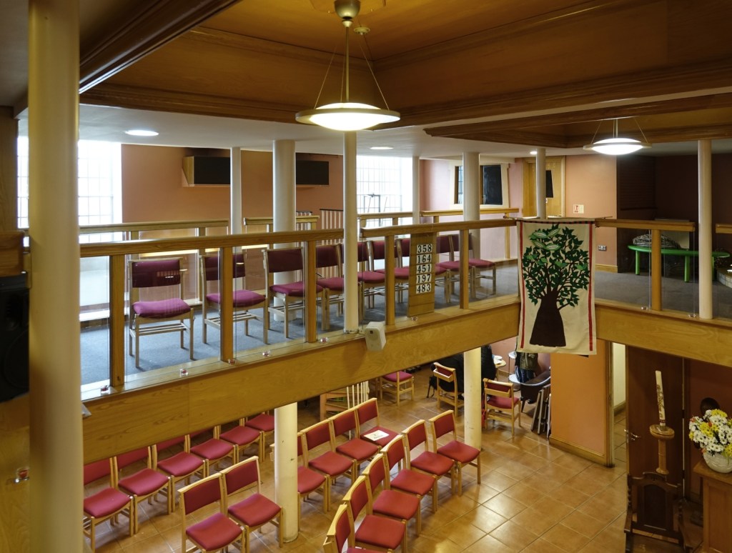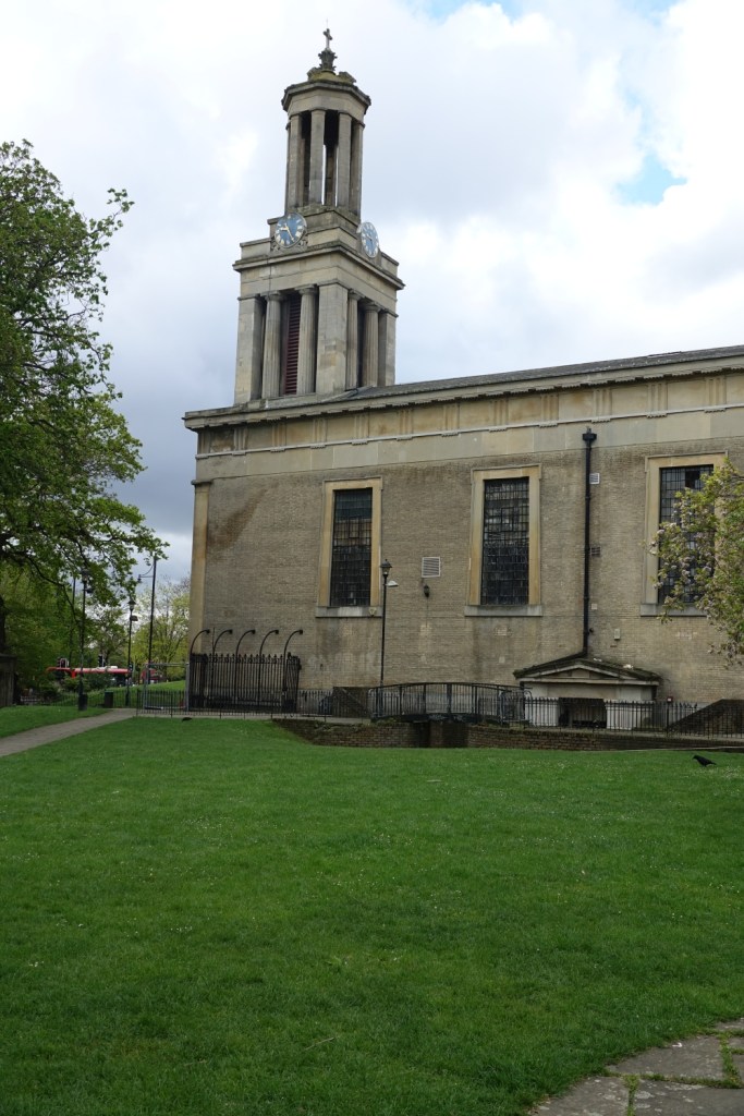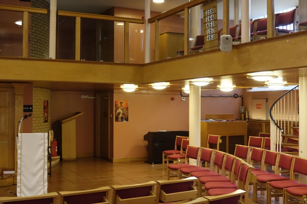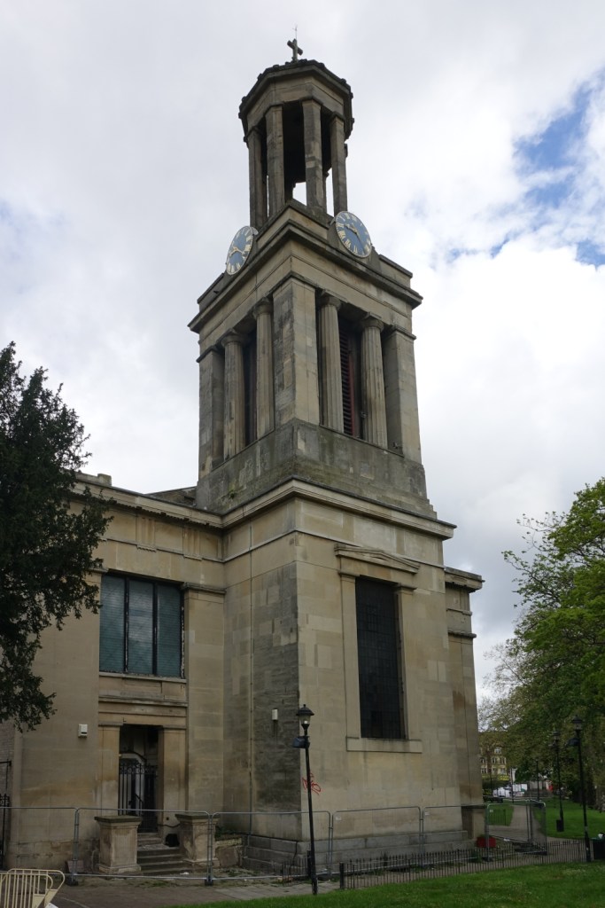 In a large churchyard at the apex of Brixton Hill and Efra Road. One of the “Waterloo Churches”, it was designed in 1822 by C.F. Porden. Much of the building is divided off for other uses, the worship area is a galleried area at the west end of the nave.