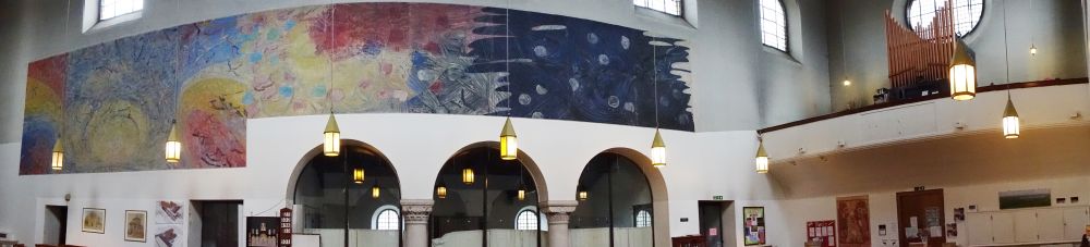 Planned in 1911 but not built until 1932-33 to designs by Adshead & Ramsey. The murals are by Norman Adams