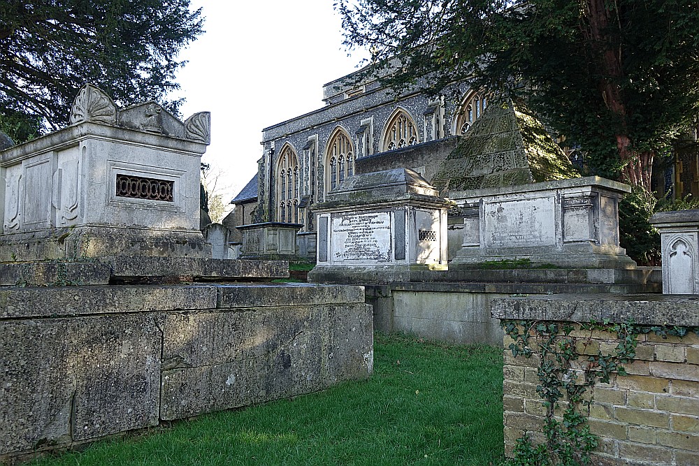 The parish church of Wimbledon, but well to the east of the village centre. The medieval church was rebuilt in 1788 by John Johnson and in 1843 by G.G. Scott & Moffat. The chancel was rebuilt by Scott in 1860. The Cecil chapel on the south side of the chancel is of 1626-36.