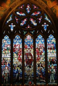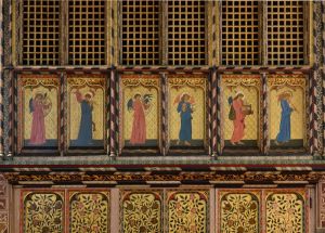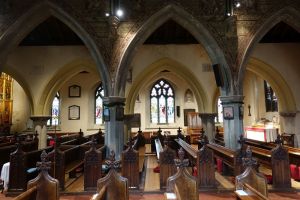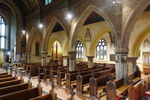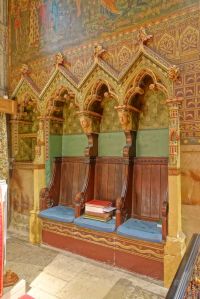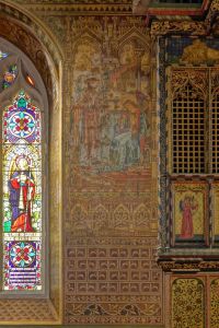 Attractively sited in a large churchyard next to Beddington Park and Carew Manor. Much of it dates from the 14th century with an 1867-69 restoration by Joseph Clarke, with the dormers added in 1907 bu H.P. Burke-Downing. Apart from the new north aisle, added by Clarke, most walls are covered in 19th-century paintings and stencilling. There is an organ case with early William Morris decoration and a huge doom altarpiece, now at the west end of the north aisle, by Clayton and Bell. There are a number of misericords in the choir stalls.