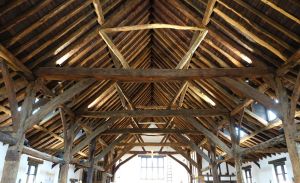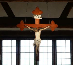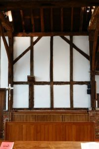 Constructed in 1930-33 using materials from barns at Cheam Court farm. The architects were C.J. Marshall and Edward Swan. These photos were taken while new lighting was being installed and adjusted hence the ladders etc.