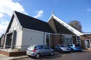 Off the centre of Barnet, the church was designed by Lanner of Wakefield in 1977 and was extended towards the road in 2017. It was reopened in September 2017, after a year’s closure. The engraved windows are by Sally Scott. The final pictures are from April 2017, when the whole building was being gutted and the extension added.