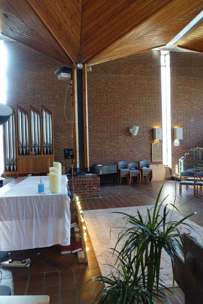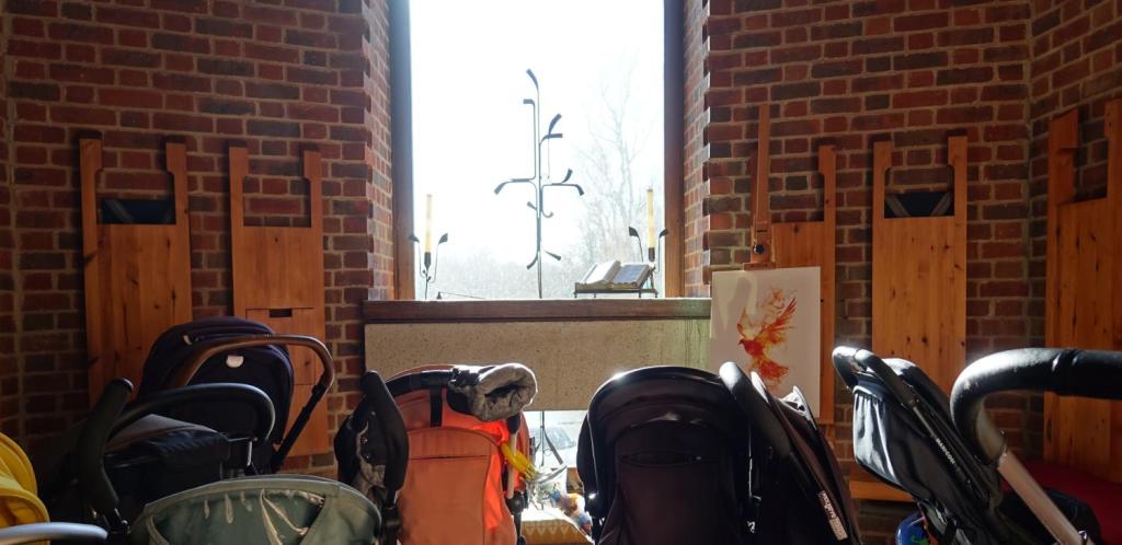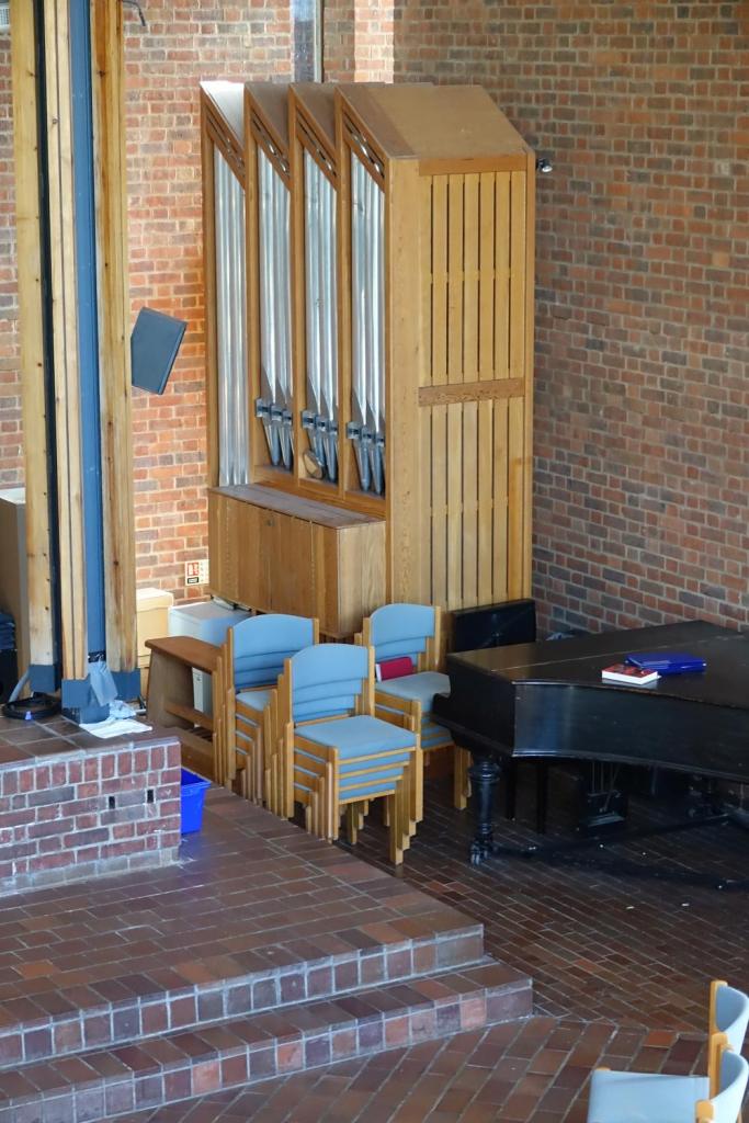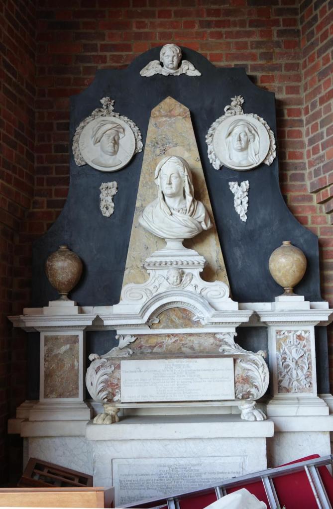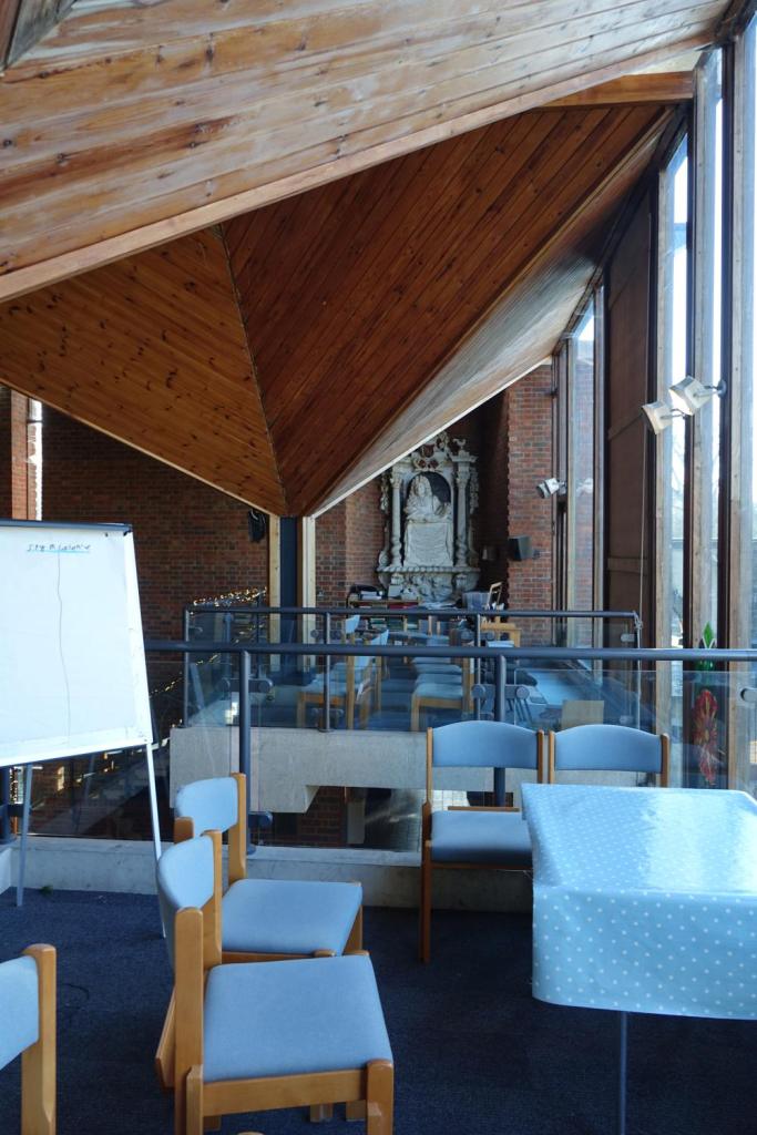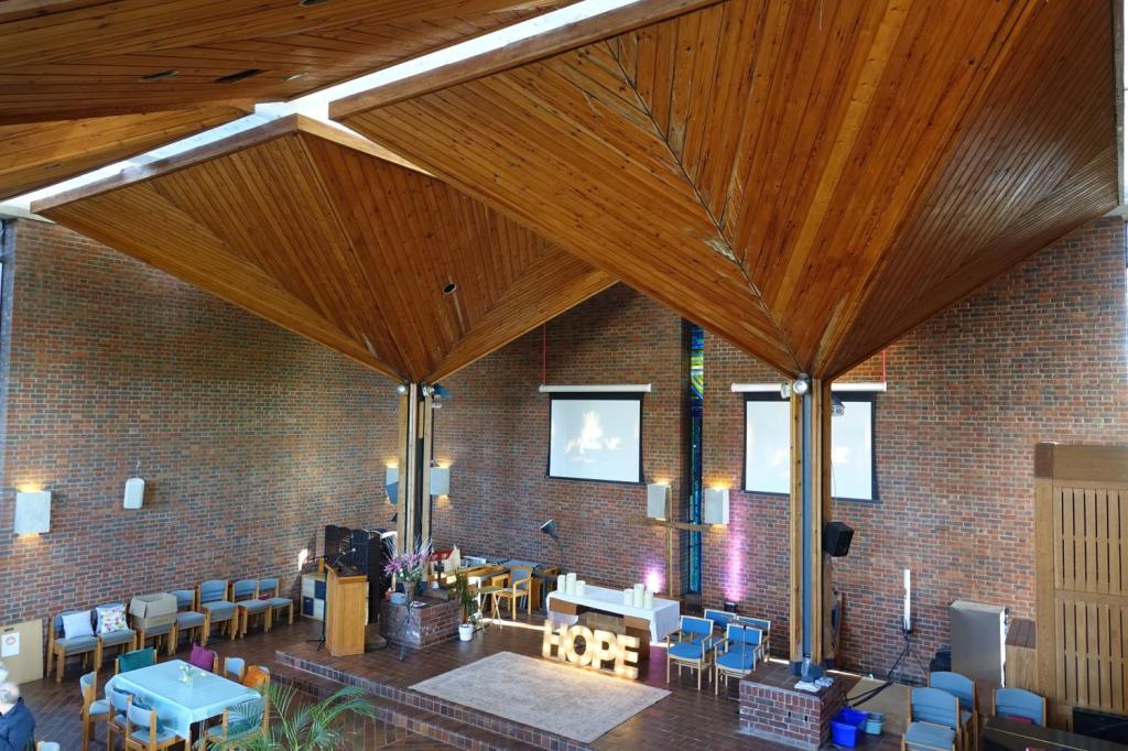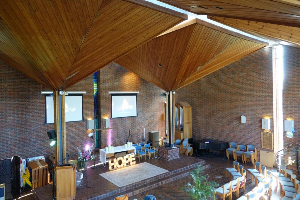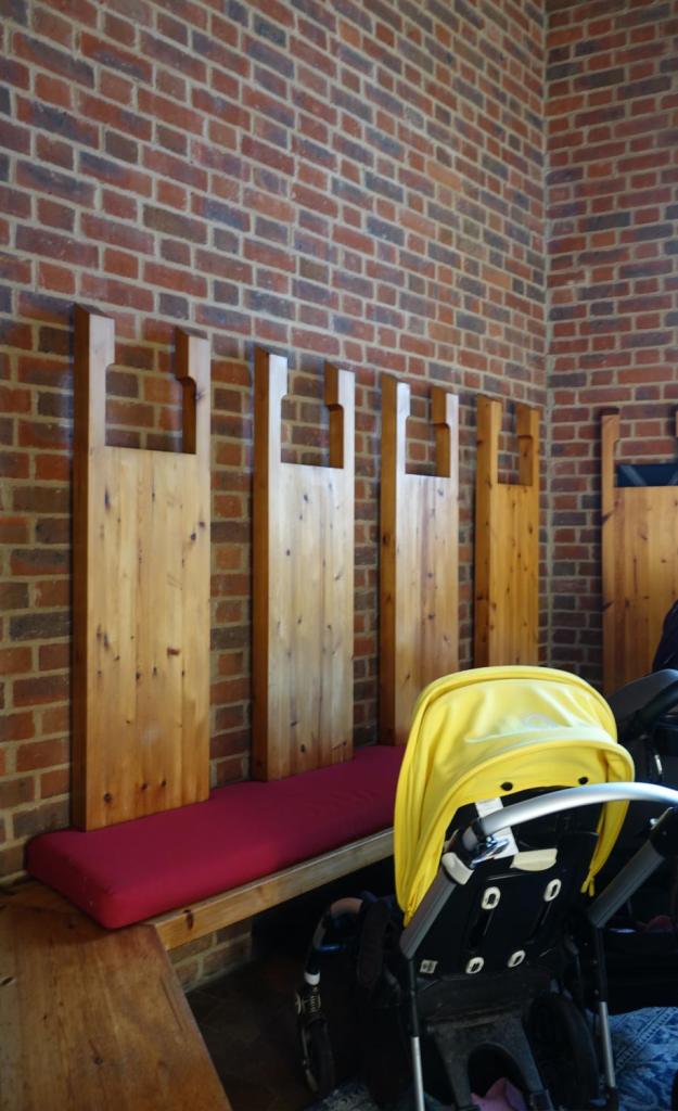 The old village parish church right by the River Thames. However only the 15th century tower and 1706 nave outer wall remain as the church was seriously damaged in arson attack in 1943. The church of 1967-70 by Michael Blee sits where the old chancel was, the nave being a courtyard with the aisle spaces filled with small rooms. There is a small Joshua chapel just inside the church (used as buggy store on my visit)