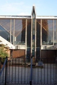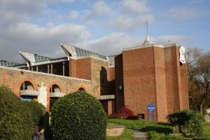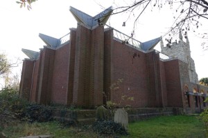 The old village parish church right by the River Thames. However only the 15th century tower and 1706 nave outer wall remain as the church was seriously damaged in arson attack in 1943. The church of 1967-70 by Michael Blee sits where the old chancel was, the nave being a courtyard with the aisle spaces filled with small rooms.