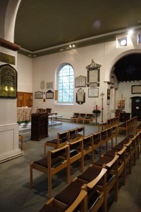 The parish church of Feltham, a good kilometre south of the town centre. It is a rebuilding of 1802 by William Walker. Norman revival aisles were added in 1855-56. Many fittings are modern as the old woodwork was condemned and removed in the 1950s.