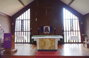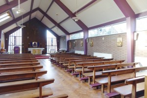 Replacing a house used for worship, which became the presbytery, this is a church of 1959-60 by Donald Plaskett Marshall. An entrance area was added in the 199os by Eckhard Weisner
