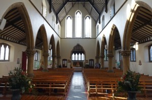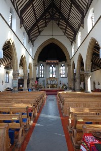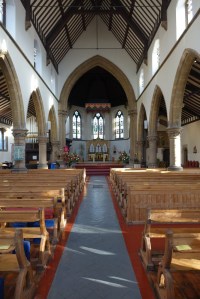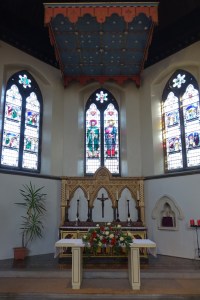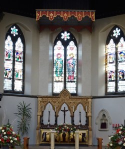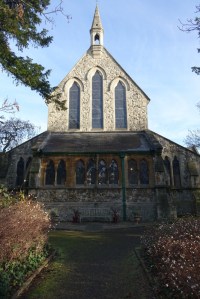 Grove Park is a Victorian suburb south of Chiswick railway station. This church was designed by H. Currey and built in 1872. The apse stained glass is by M.E. Aldrich Rope.