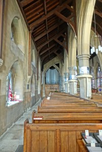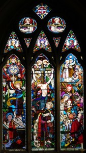 The church for the contemporary Spring Grove estate. It dates from 1856 and was designed by the estate’s architect J. Taylor. impressive windows of 1866 by Robert Bayne, plus two in the nave by Veronica Whall.