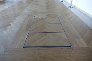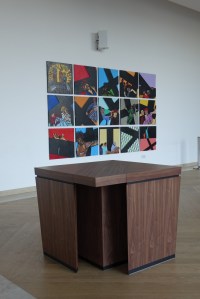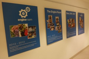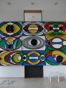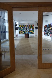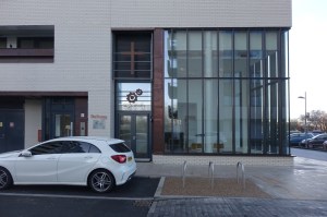 Lee Valley Estates, the developers, provided an area on the ground floor of one of the housing blocks on a 500 year lease. This is called the Engine Room and as well as a worship area offers halls, rooms and a cafe. The triptych called “The Eternal Engine” and the Stations of the Cross paintings (15 rather than the traditional 14 as there is an extra called Resurrection) were created by Graeme Mortimer Evelyn. Towards the back of the church is an underfloor full immersion font.