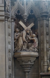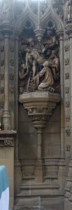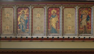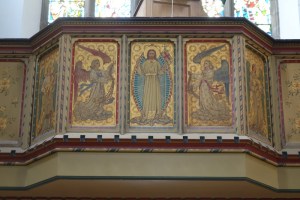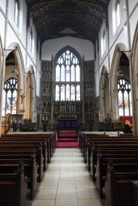 On a commanding site above the road. The church was built by Samuel Daukes and Hamilton in 1847 in Wells Street in central London. It was one of the earliest scholarly gothic revival buildings and had a stong Anglo-catholic ethos. Surplus to requirements in central London tt was moved to Kingsbury in 1934 by W.A Forsyth to provide an appropriately sized church for the growing suburb. Inside there are furnishings by the cream of 19th century architects and designers including Alfred Bell, Butterfield, Pearson and Street