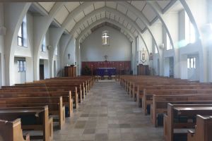 A suburban church, the present building dates from 1957 and replaces a war damaged 19th-century church. The architects were L.K. Hett and J.C.H. Odam