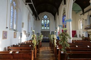 This church was begun in 1865-1866 to designs by W. Smith but was not completed until 1928. It was severely damaged in WW2 and was rebuilt by 1952 minus its south aisle and the eastern end of the chancel