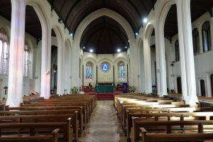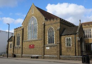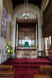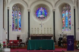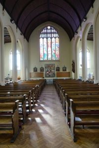 At the eastern end of the town centre. It was designed in 1890 by Scoles and Raymond. The western three bays of the nave were added in 1935-1936. Inside there is a lot of brightly coloured glass from the 1950s made in Dublin’s Harry Clarke Studios. There is a priory next door.