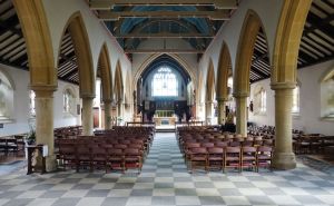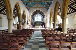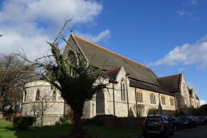 Southeast of the town centre, a church of 1868-1869 by G.E Street. Arthur Blomfield & Sons added an east window, nave west end and south chapel in 1909. There is a mixture of mid 20th century Powells glass and early 20th century Kempe glass.