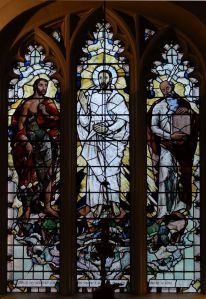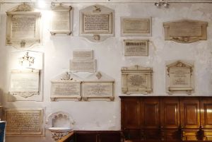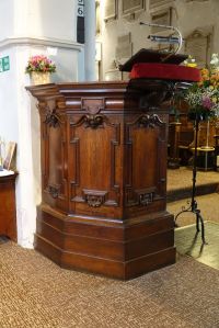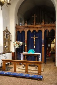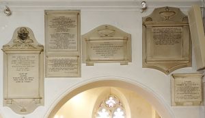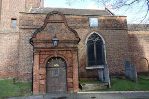A rebuilding in brick, from 1630, of the medieval church. The north aisle is 1639, but the eastern sections were added in 1840 and 1873. The interior is chock full of memorial tablets and monuments, unfortunately, two of the largest are rather obscured by stored material.