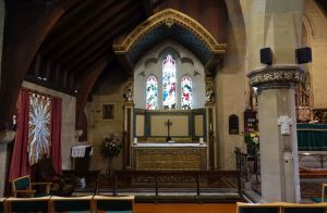 A large church, about a mile south of St Peter, this one by John Oldrid Scott, dating from 1881-84. It was subdivided in 1989 with the nave and aisles converted to a hall, offices and meeting rooms, toilets and a kitchen. The worship area is now in the crossing, transepts and chancel.