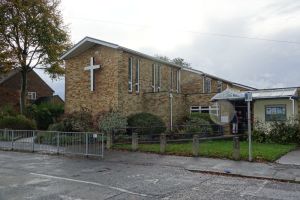 Right on the border with Surrey at the southern tip of Croydon borough, this is a hall church by A.W. Kenyon, built 1957. The chancel can be screened off from the hall area when the hall is in secular use.