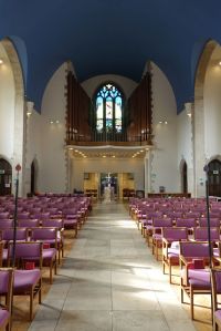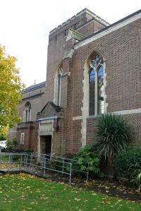 A little nearer the centre of Addiscombe than the Roman Catholic church and Parkview Church this is a large church of 1931-1934 designed by Cecil Hare and his last church. A whole complex of buildings was constructed around its westwards and northwards to give extensive community facilities in 2007. Included in this is a small open courtyard chapel between the church and the extension. The interior of the church was redecorated in late 2018 giving it a very fresh look inside.