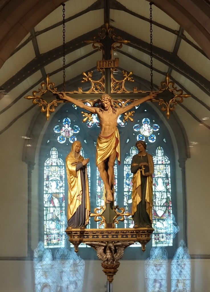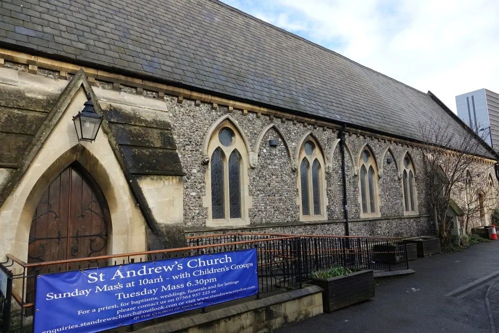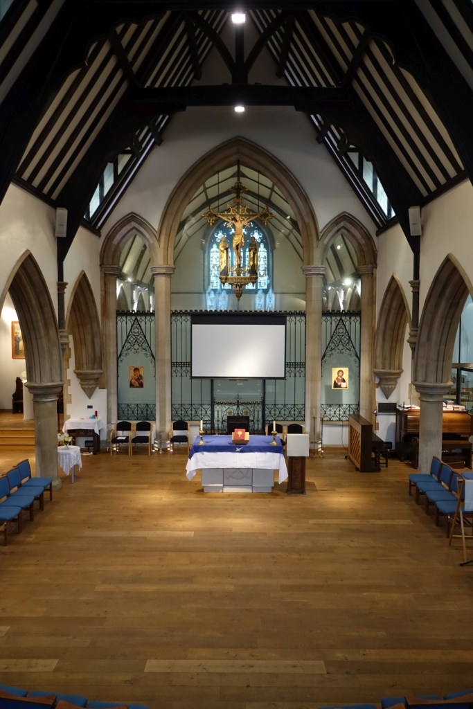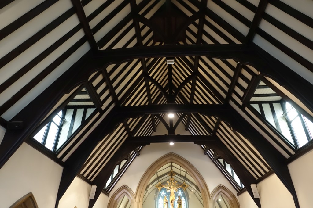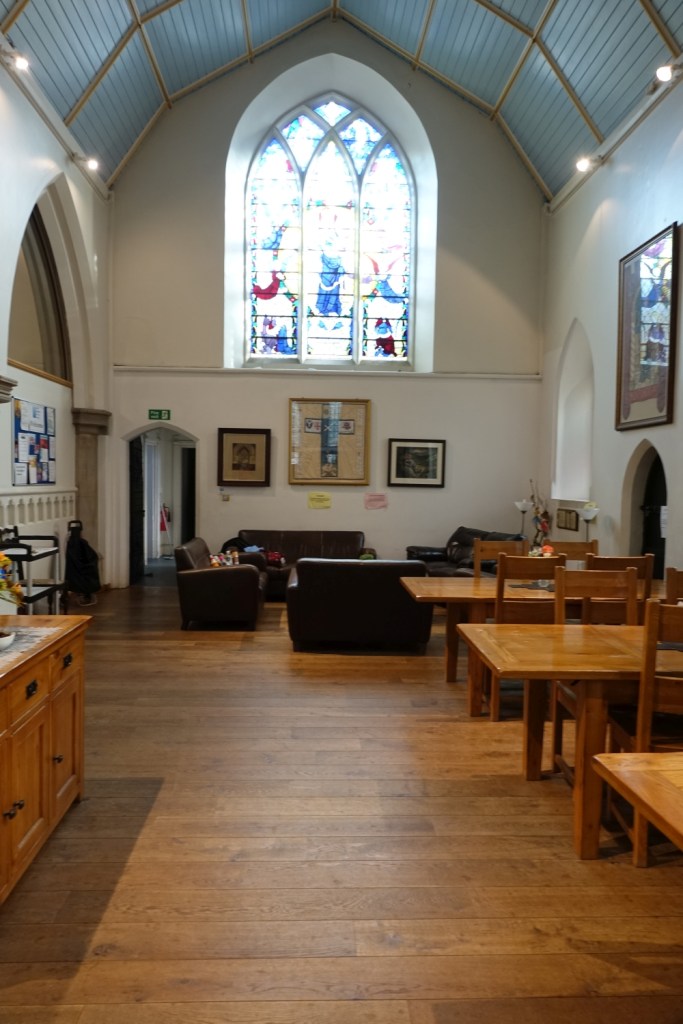 South of the town centre, this is a church designed by Benjamin Ferrey in 1857 and extended several times. Inside the west end of the nave has been stepped and filled with tiered seating. The chancel is screened off as a hall area and the east end of the south aisle is now a lounge area. There are several Ninian Comper windows.